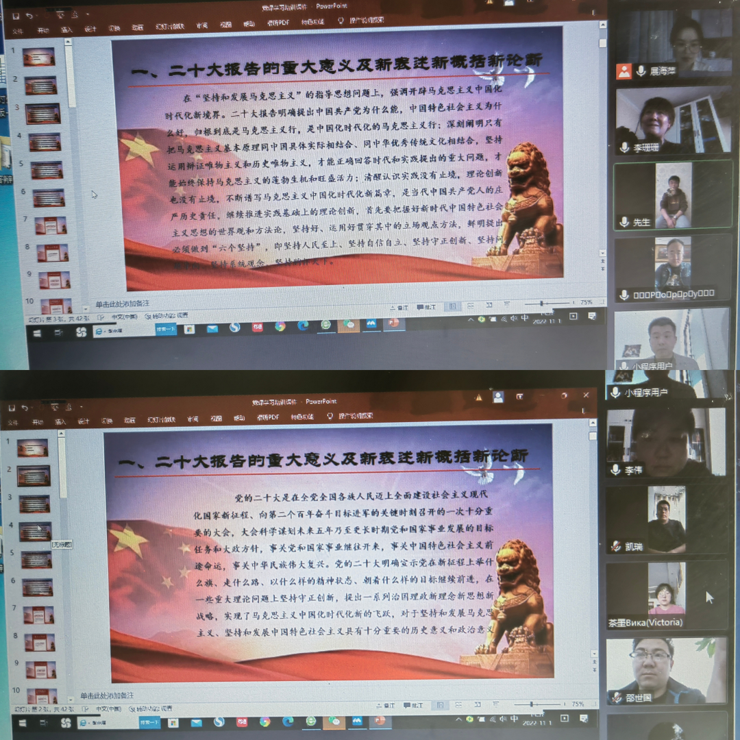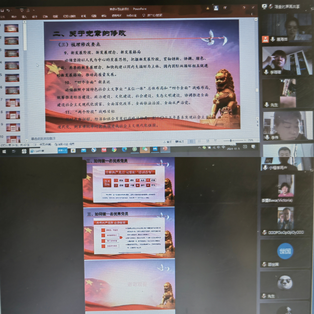近日,新絲路公司黨支部線上開(kāi)展了“黨的二十大報(bào)告專(zhuān)題學(xué)習(xí)”主題黨日活動(dòng)和新黨章學(xué)習(xí)培訓(xùn),充分學(xué)習(xí)黨的二十大召開(kāi)重要意義和會(huì)議精神,把全員思想和行動(dòng)統(tǒng)一到黨的二十大精神上,把黨的二十大精神貫徹落實(shí)到各項(xiàng)工作中,為保障新絲路公司全年任務(wù)目標(biāo)圓滿完成和推進(jìn)隴神戎發(fā)實(shí)現(xiàn)高質(zhì)量發(fā)展賦能。
