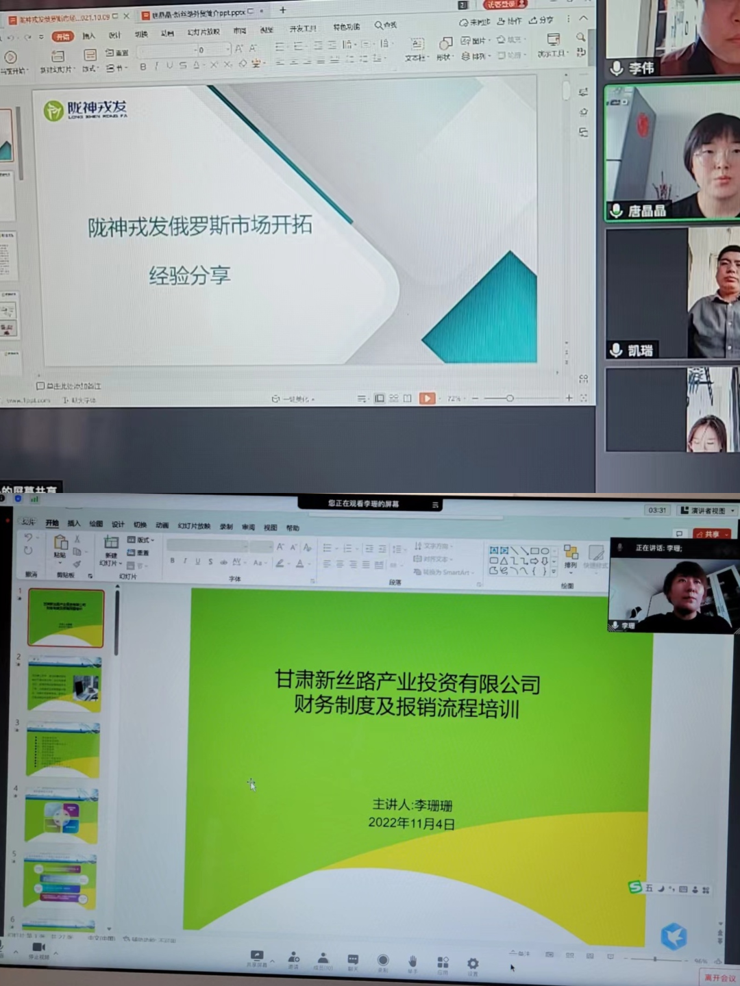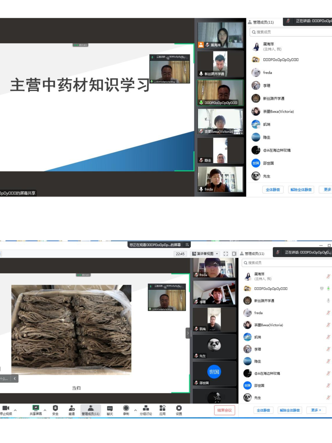 同時(shí),公司本周連續(xù)五天安排了“走進(jìn)新絲路”、“產(chǎn)品境外注冊(cè)業(yè)務(wù)之俄羅斯注冊(cè)篇”、“公司主要經(jīng)營(yíng)中藥材知識(shí)學(xué)習(xí)”、“財(cái)務(wù)制度和報(bào)銷(xiāo)流程培訓(xùn)”等學(xué)習(xí)培訓(xùn)和“成本分析”業(yè)務(wù)對(duì)接會(huì),利用本次機(jī)會(huì)向新老員工進(jìn)行了系統(tǒng)地介紹和講解新絲路的發(fā)展歷程、業(yè)務(wù)操作流程、如何提升團(tuán)隊(duì)凝聚力及未來(lái)發(fā)展規(guī)劃等內(nèi)容。此外,公司還統(tǒng)籌協(xié)調(diào),積極參加了集團(tuán)公司和母公司組織的各項(xiàng)培訓(xùn),切實(shí)做到了居家封控期間學(xué)習(xí)、工作兩不誤,培訓(xùn)、業(yè)務(wù)兩手抓,持續(xù)激發(fā)員工干事創(chuàng)業(yè)熱情。