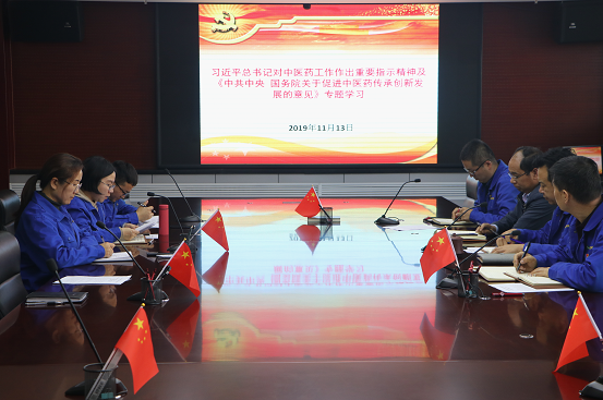 11月13日下午,隴神戎發(fā)黨委召開理論學(xué)習(xí)中心組會(huì)議,專題學(xué)習(xí)黨的十九屆四中全會(huì)精神、習(xí)近平總書記對(duì)中醫(yī)藥工作的重要指示精神及《中共中央、國務(wù)院關(guān)于促進(jìn)中醫(yī)藥傳承創(chuàng)新發(fā)展的意見》,并就學(xué)習(xí)宣傳貫徹工作進(jìn)行部署。