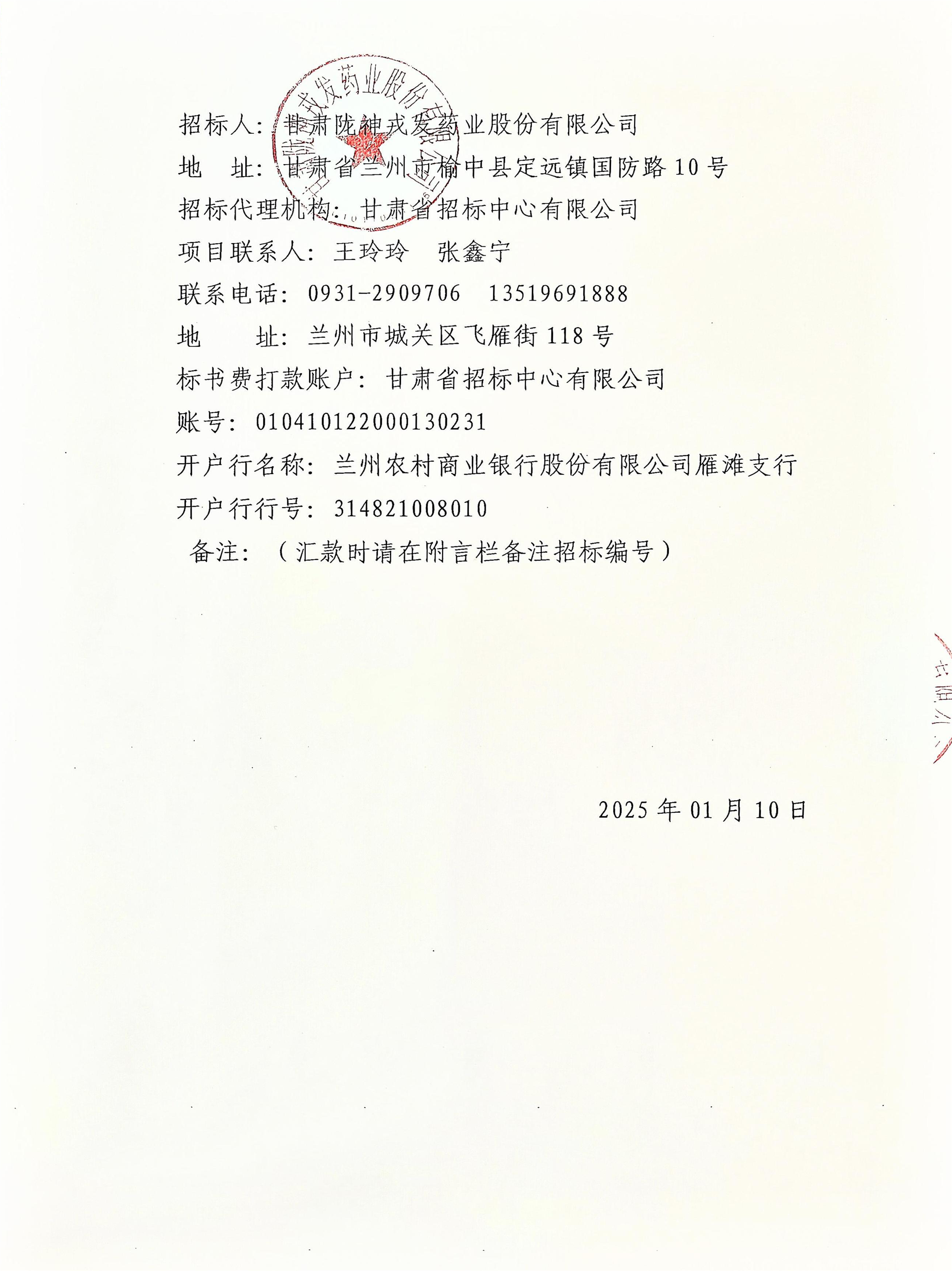 甘肅隴神戎發(fā)藥業(yè)股份有限公司中藥經(jīng)典名方開發(fā)項目招標(biāo)公告