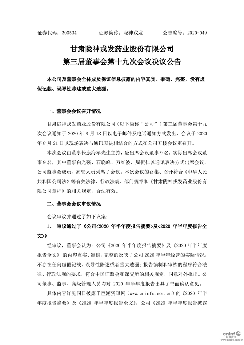 第三屆董事會(huì)第十九次會(huì)議決議公告