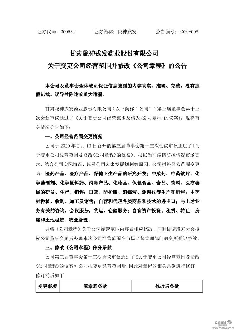 關(guān)于變更公司經(jīng)營范圍并修改《公司章程》的公告