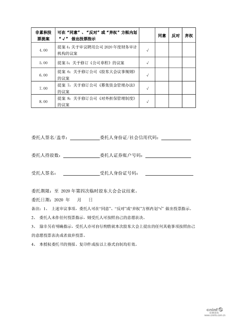 關(guān)于召開2020年第四次臨時(shí)股東大會(huì)的通知