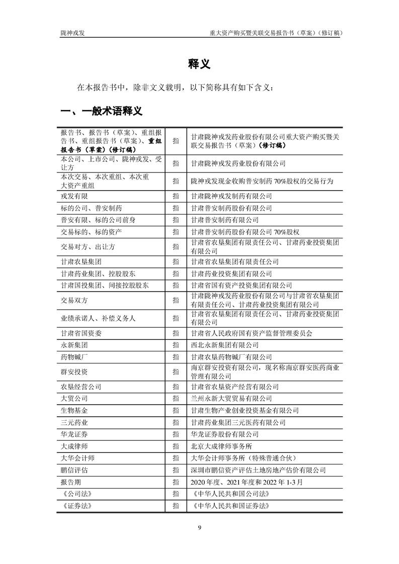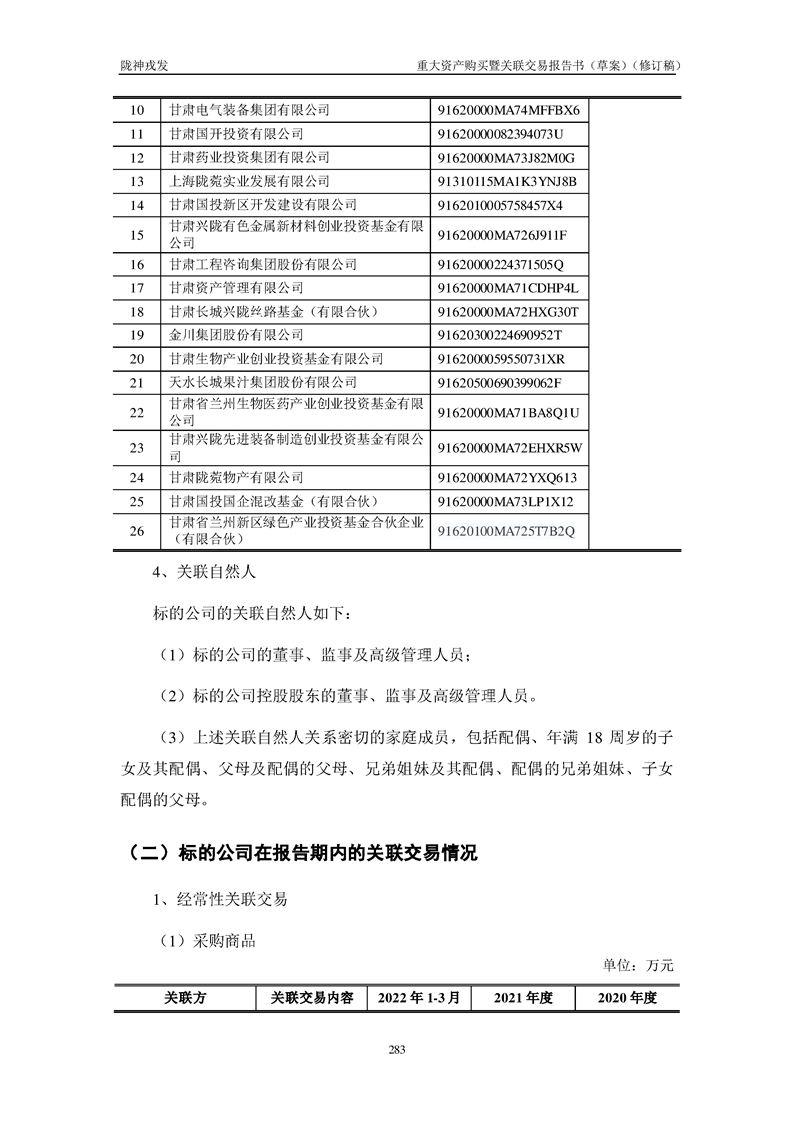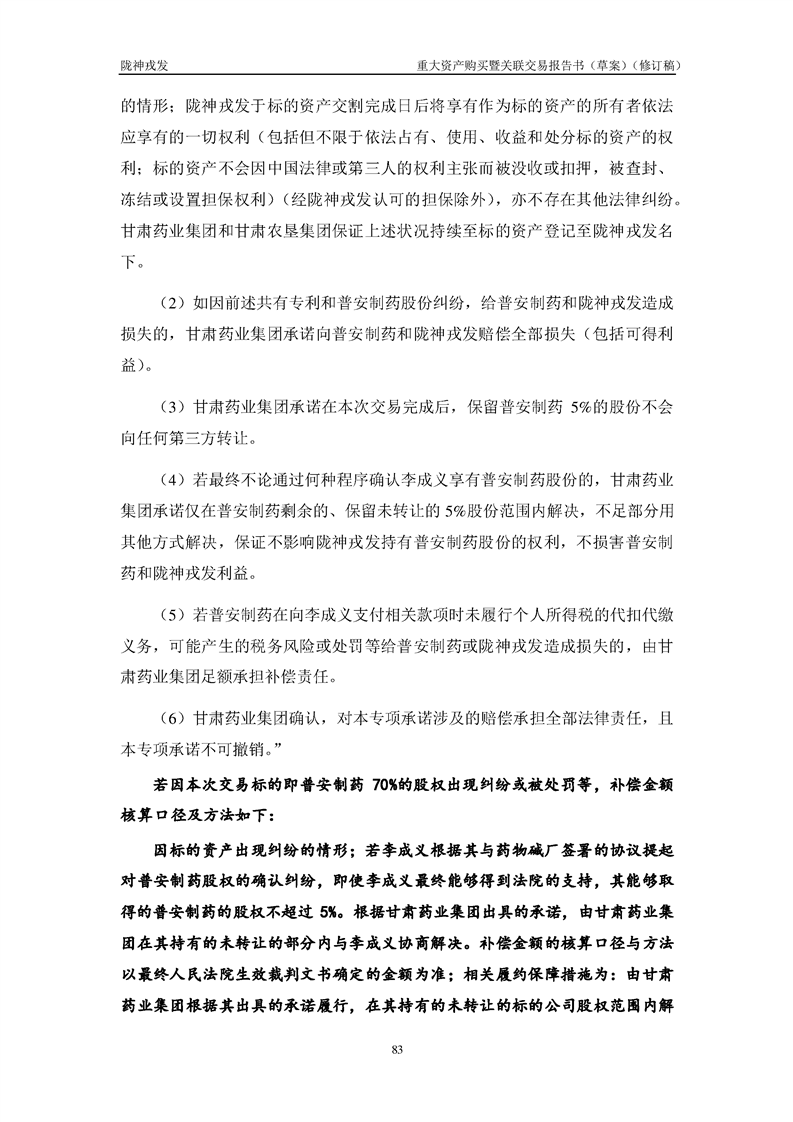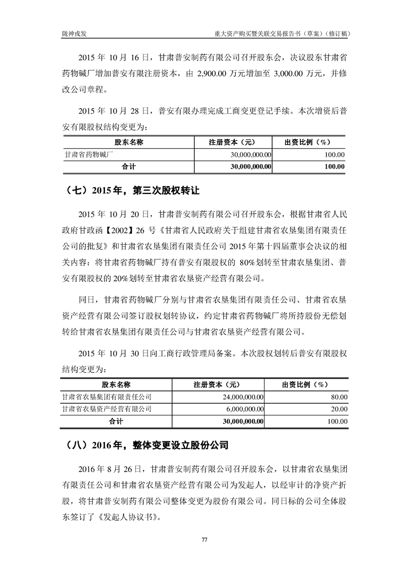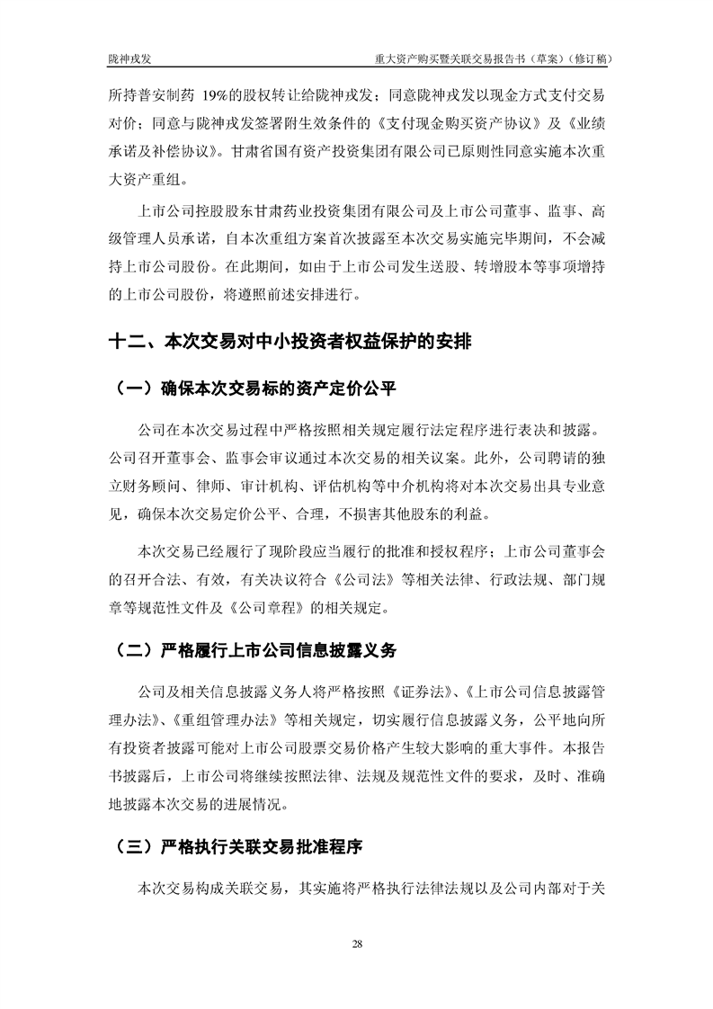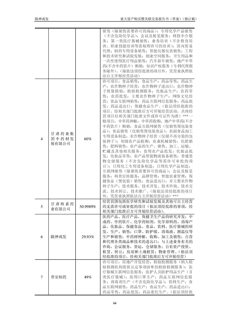 甘肅隴神戎發(fā)藥業(yè)股份有限公司重大資產(chǎn)購(gòu)買暨關(guān)聯(lián)交易報(bào)告書(草案)(修訂稿)