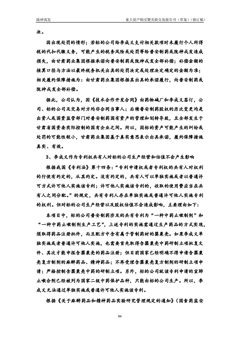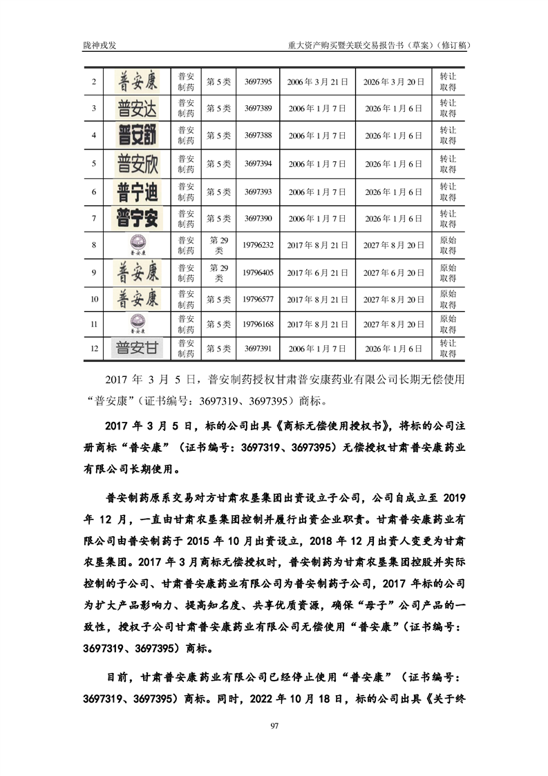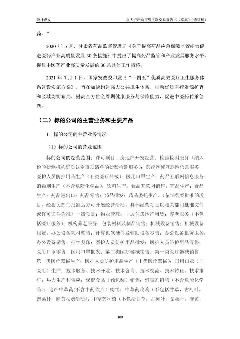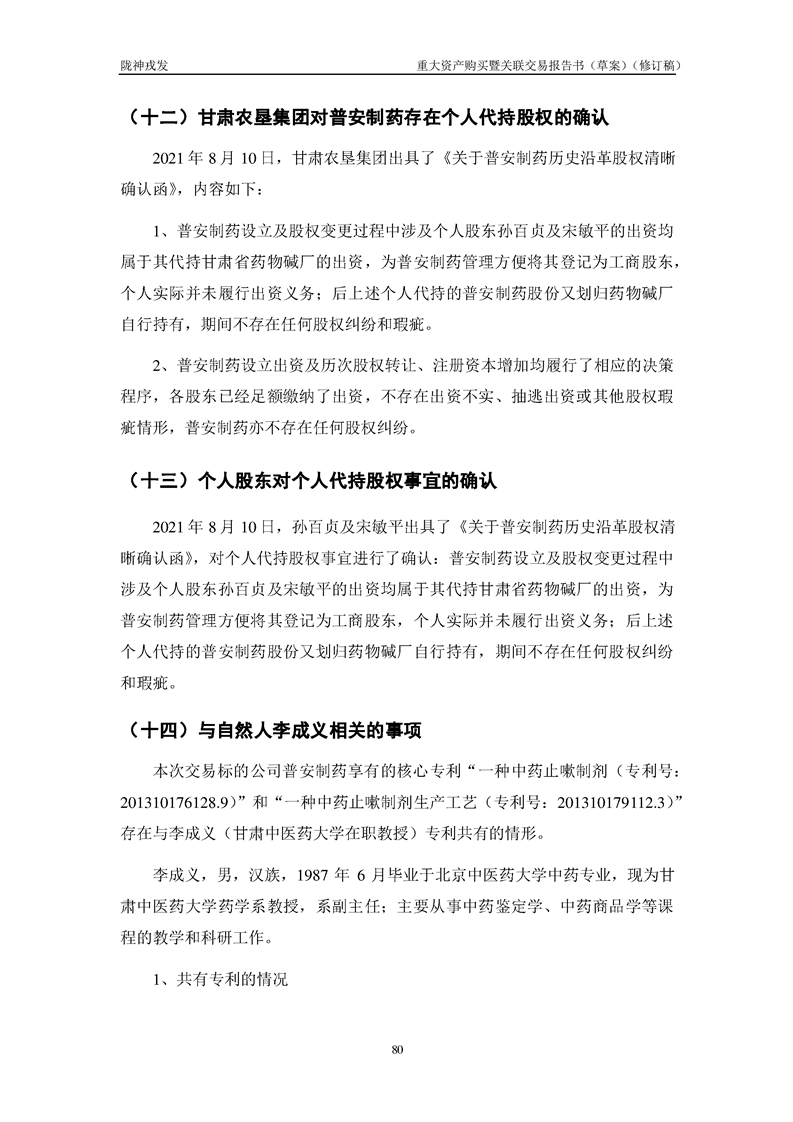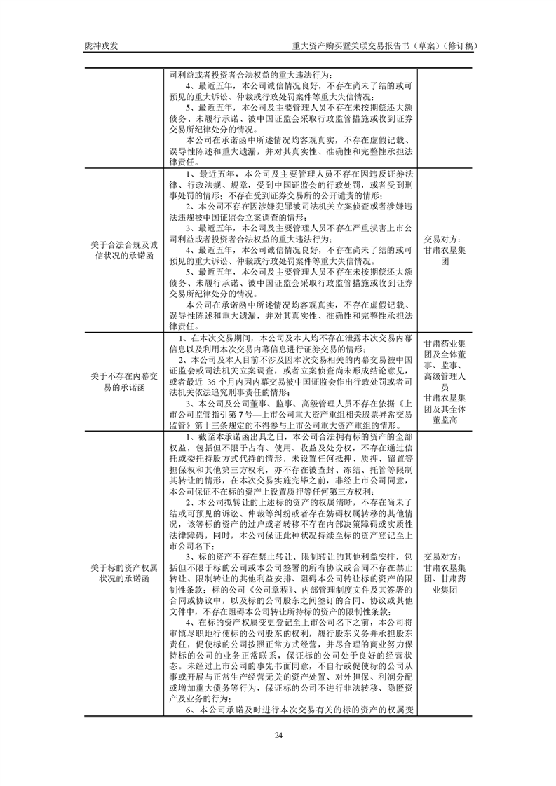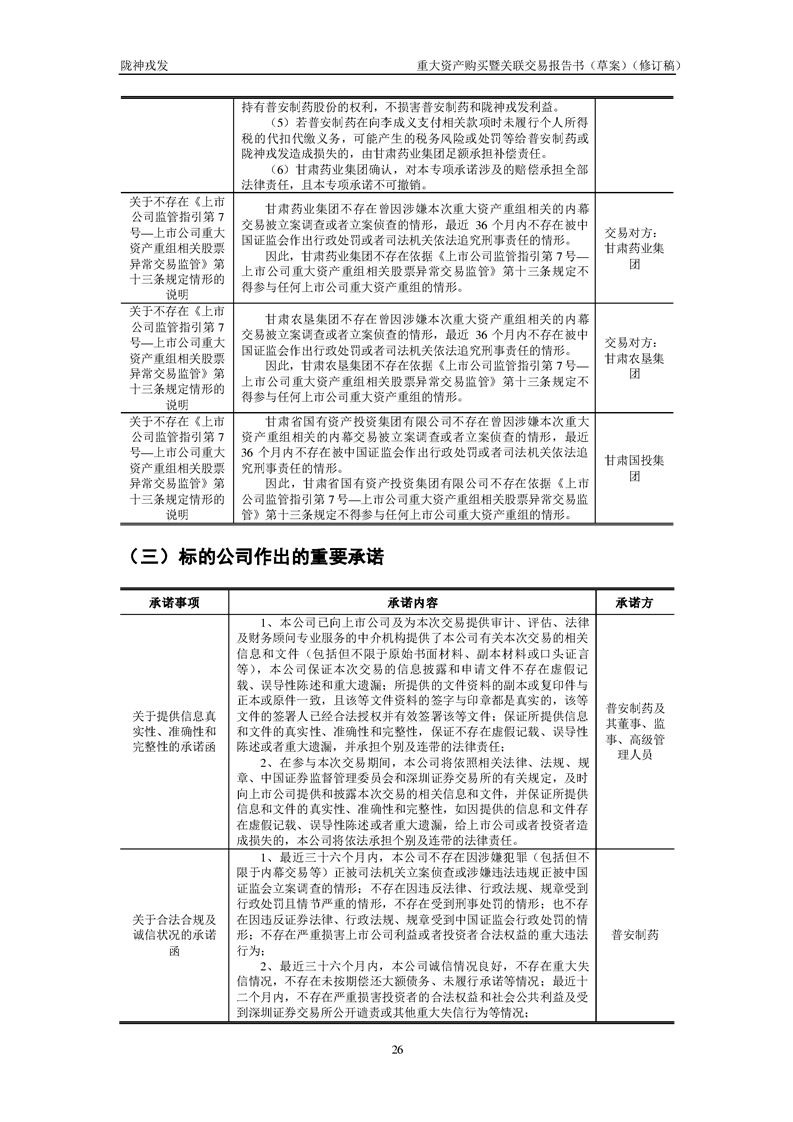 甘肅隴神戎發(fā)藥業(yè)股份有限公司重大資產(chǎn)購(gòu)買暨關(guān)聯(lián)交易報(bào)告書(草案)(修訂稿)