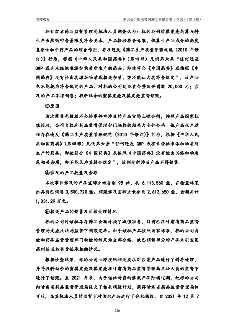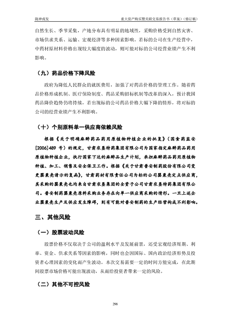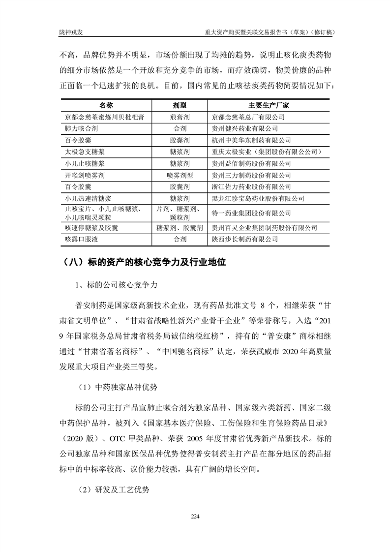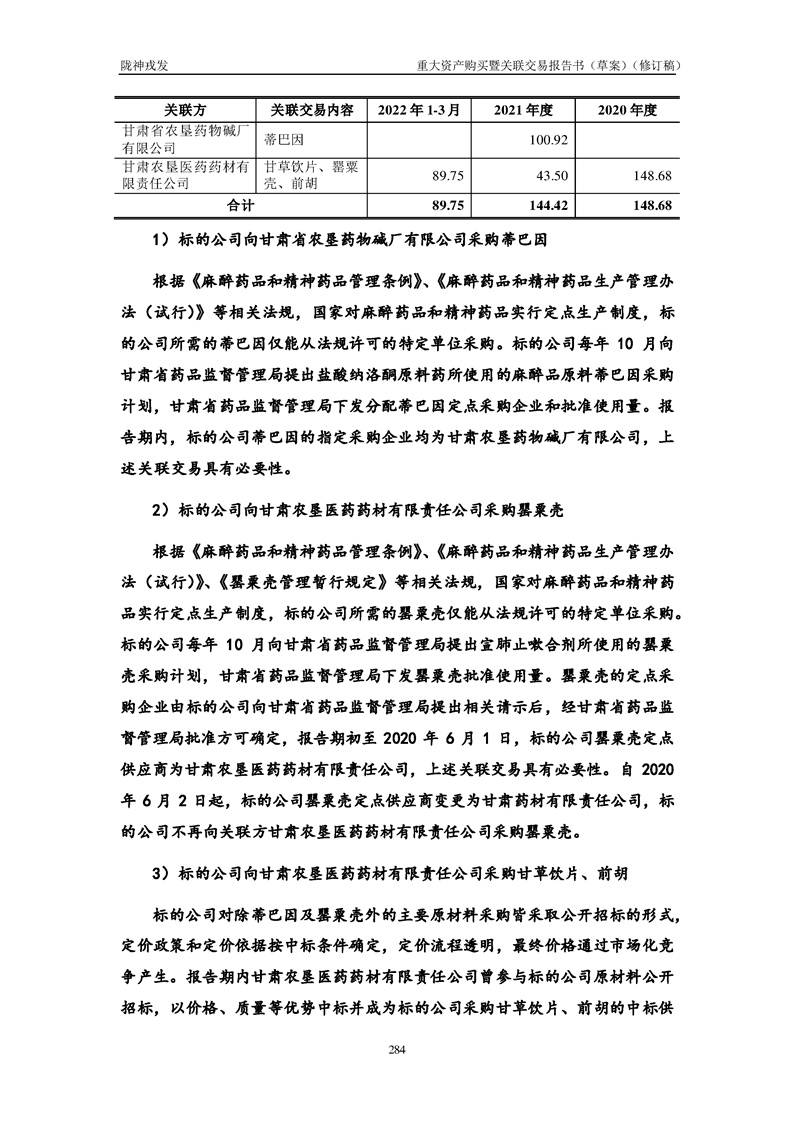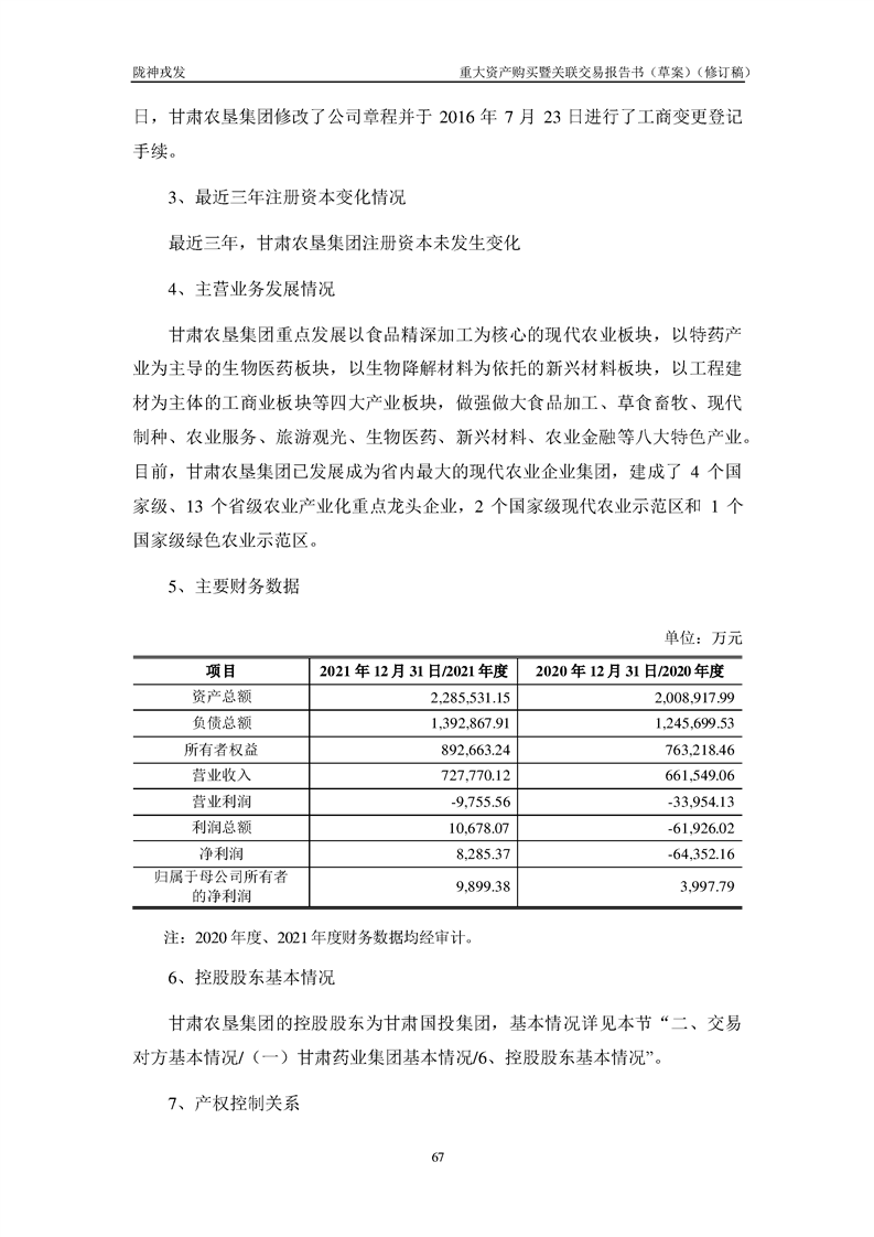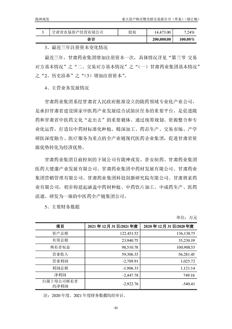甘肅隴神戎發(fā)藥業(yè)股份有限公司重大資產(chǎn)購(gòu)買暨關(guān)聯(lián)交易報(bào)告書(草案)(修訂稿)
