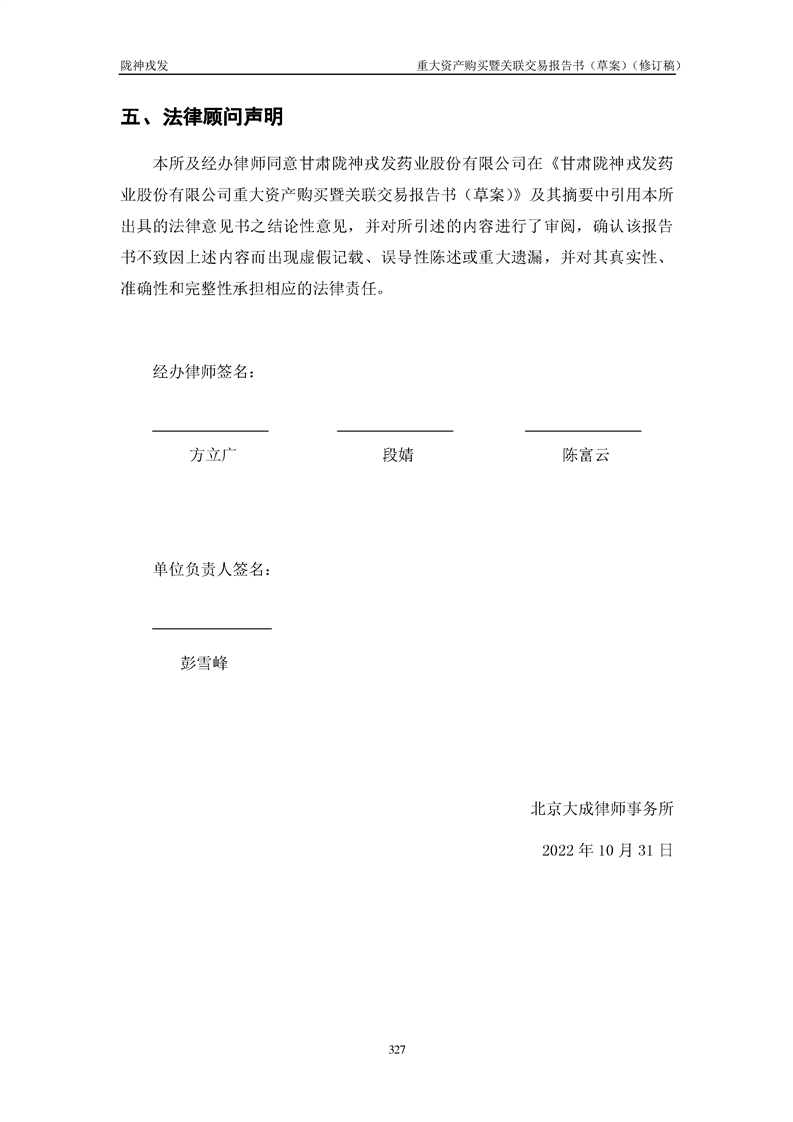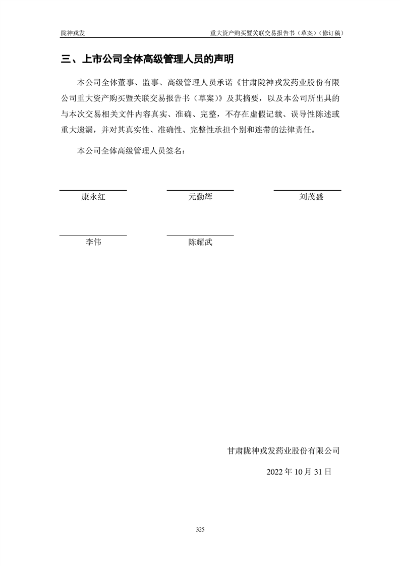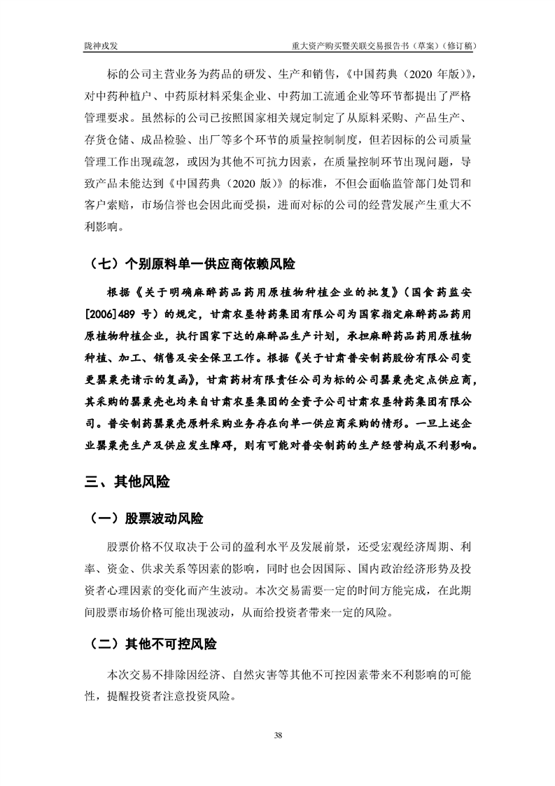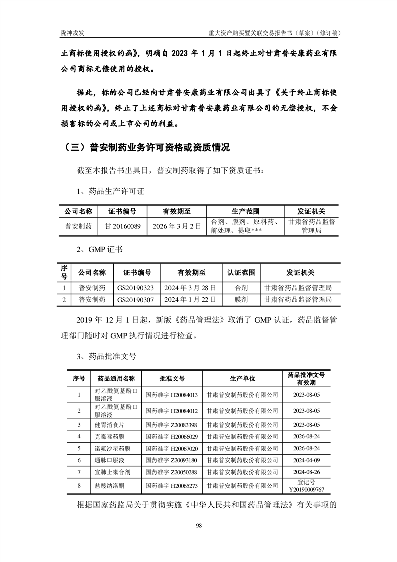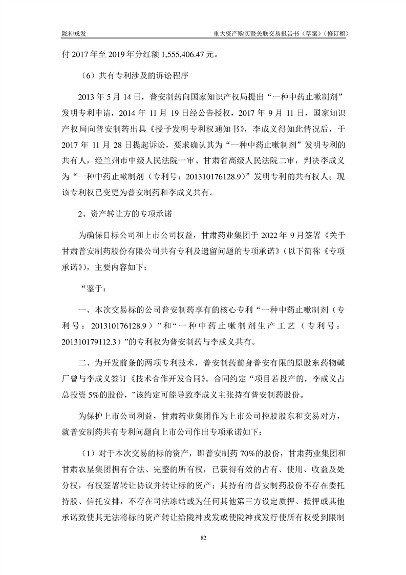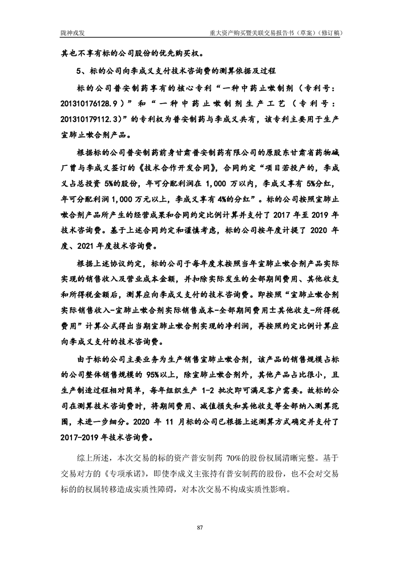 甘肅隴神戎發(fā)藥業(yè)股份有限公司重大資產(chǎn)購(gòu)買暨關(guān)聯(lián)交易報(bào)告書(草案)(修訂稿)
