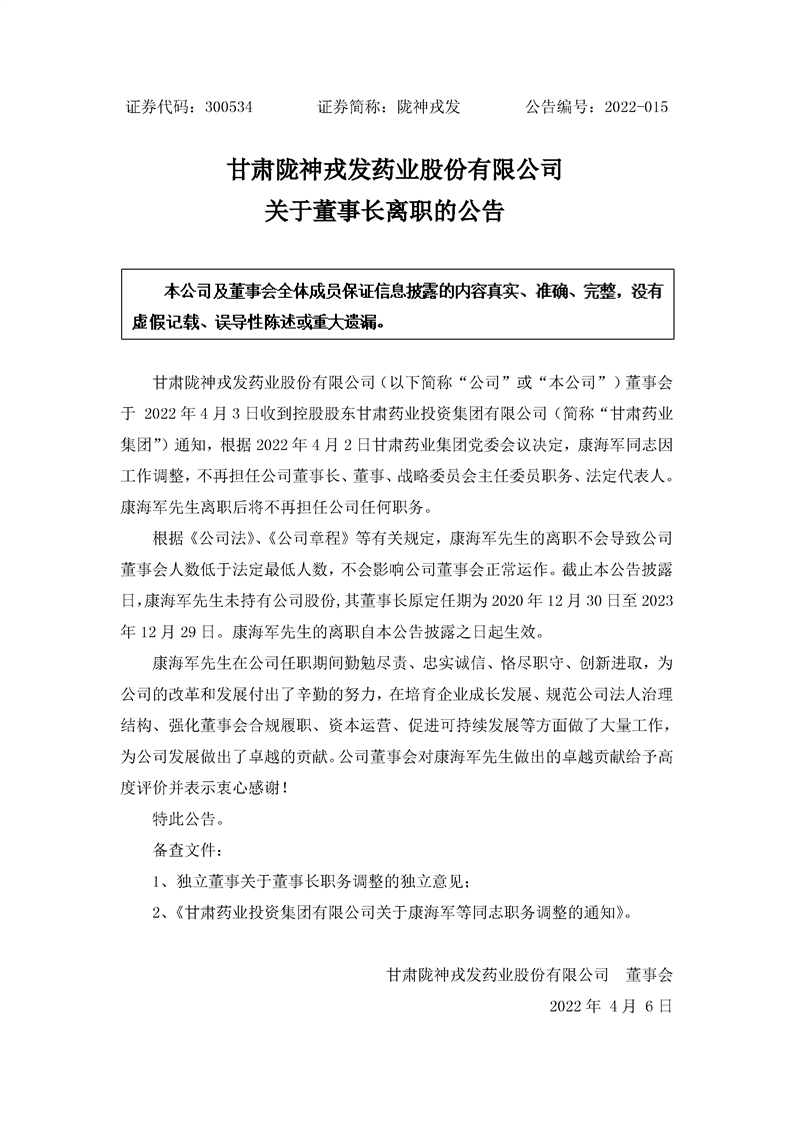 關(guān)于董事長離職的公告