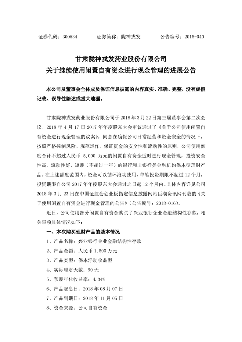 關(guān)于繼續(xù)使用閑置自有資金進行現(xiàn)金管理的進展公告