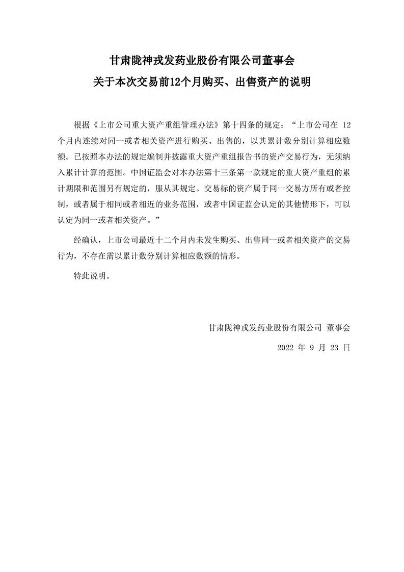 董事會(huì)關(guān)于本次交易前12個(gè)月購(gòu)買、出售資產(chǎn)的說明