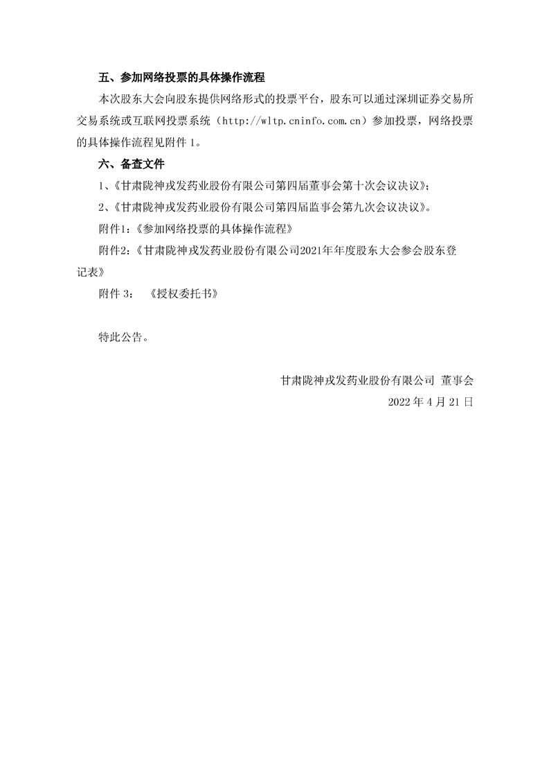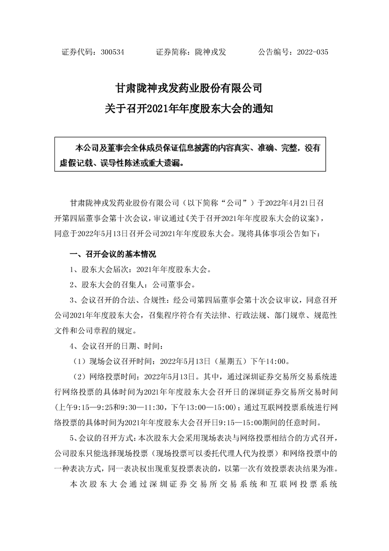 關于召開2021年年度股東大會的通知
