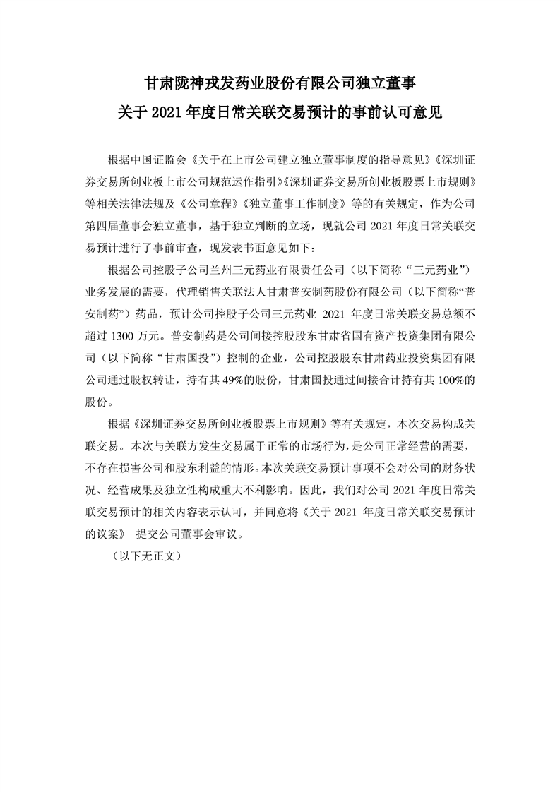 獨立董事關(guān)于2021年度日常關(guān)聯(lián)交易預(yù)計的事前認可意見