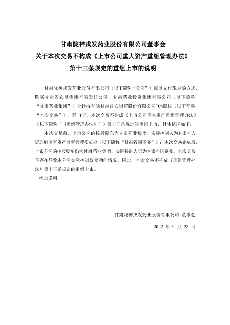 董事會關于本次交易不構成《上市公司重大資產(chǎn)重組管理辦法》第十三條規(guī)定的重組上市的說明
