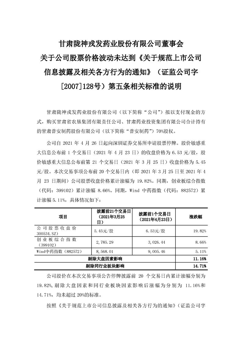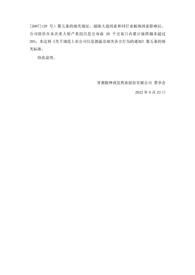 董事會關(guān)于公司股票價格波動未達(dá)到《關(guān)于規(guī)范上市公司信息披露及相關(guān)各方行為的通知》(證監(jiān)公司字[2007]128號)第五條相關(guān)標(biāo)準(zhǔn)的說明