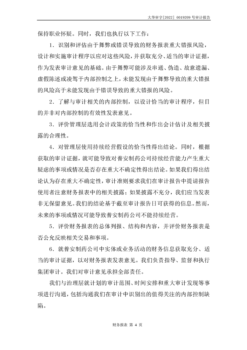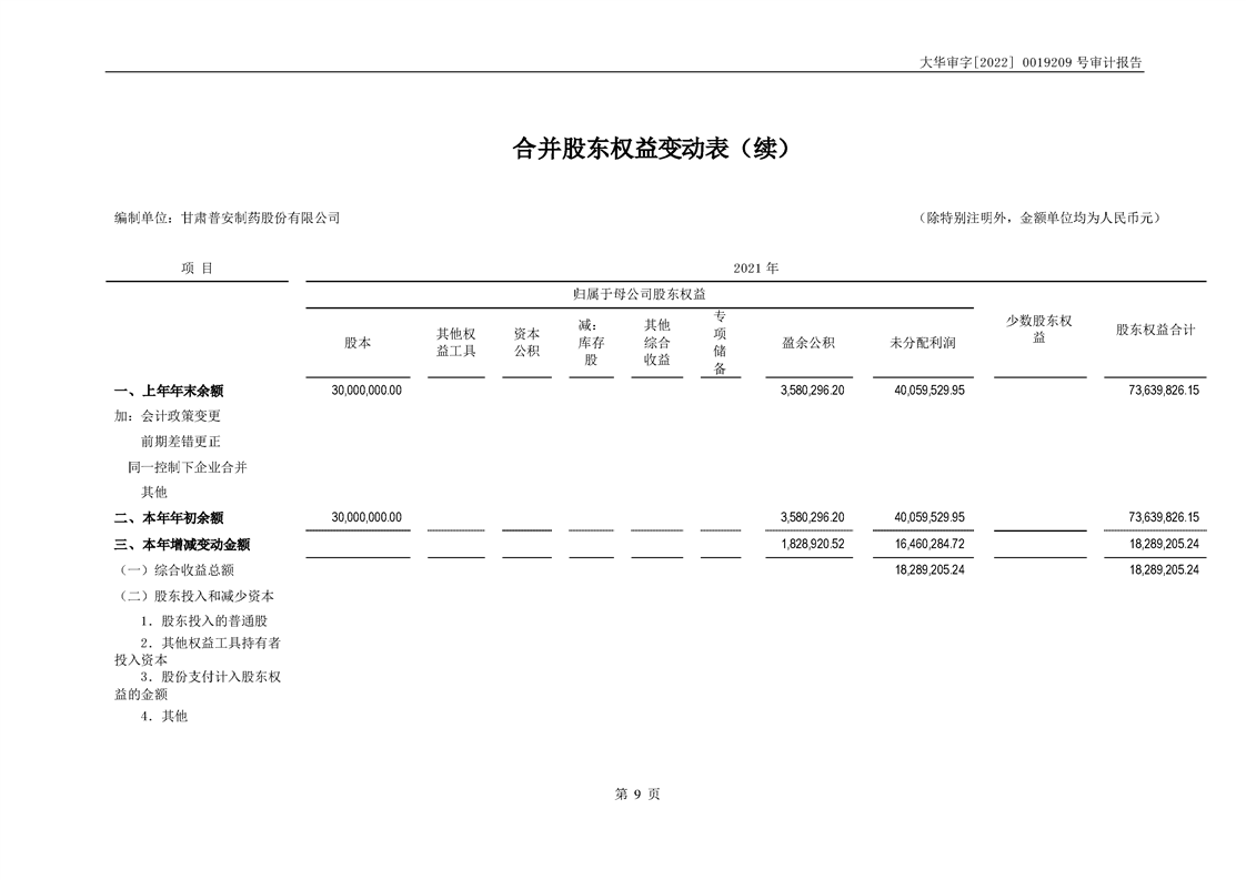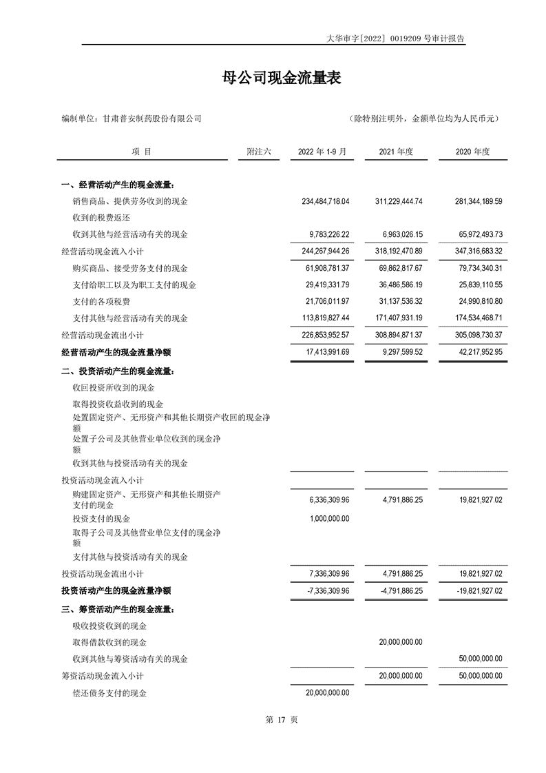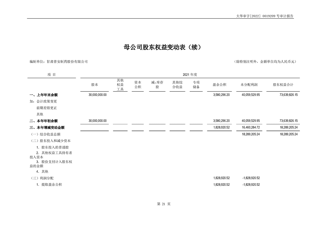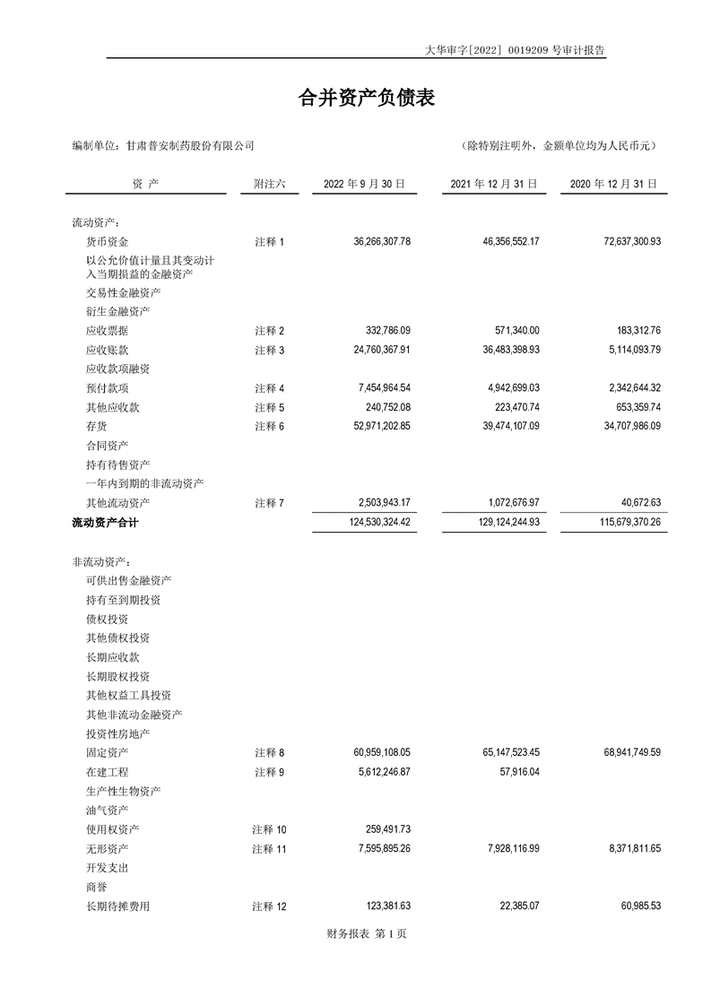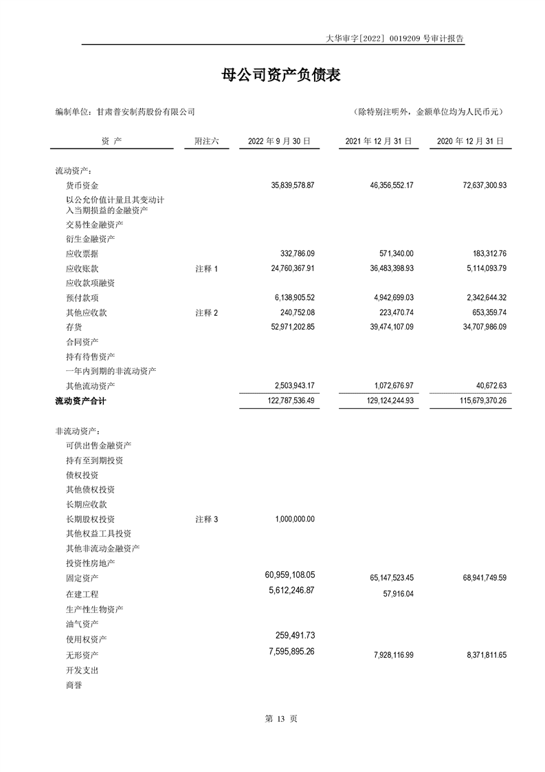 甘肅普安制藥股份有限公司審計報告-大華審字[2022]0019209號