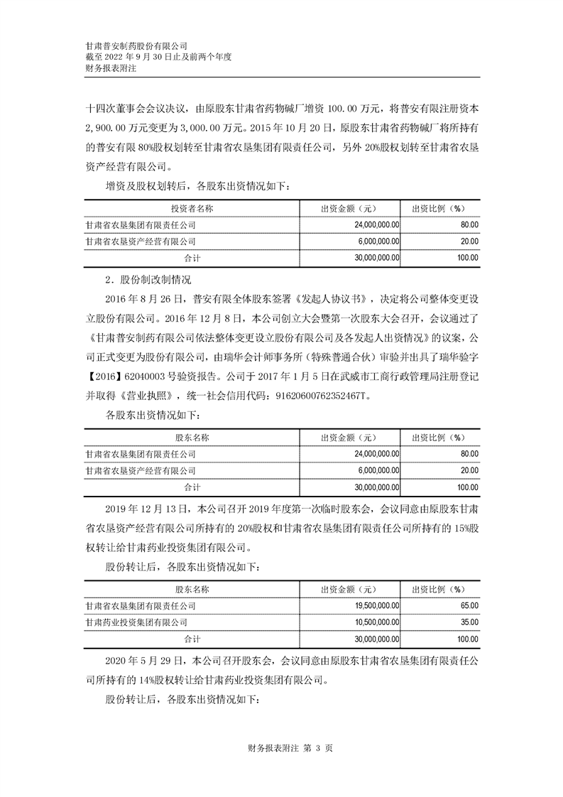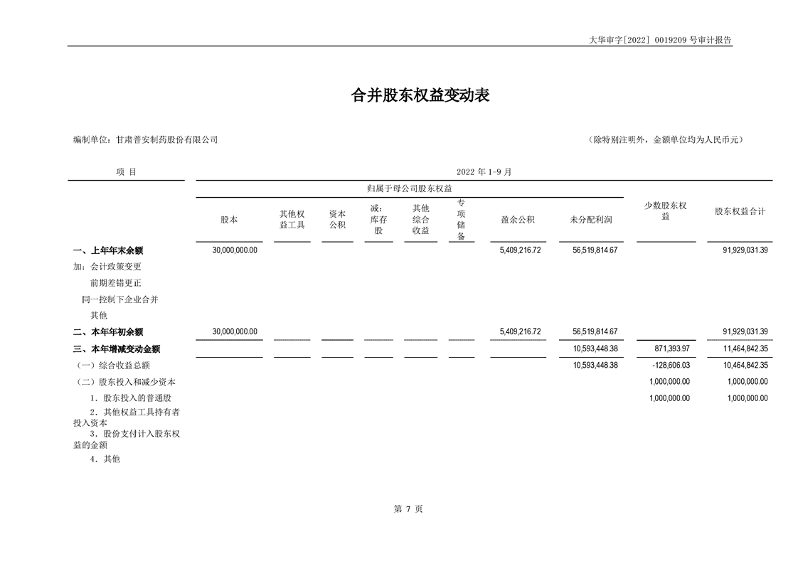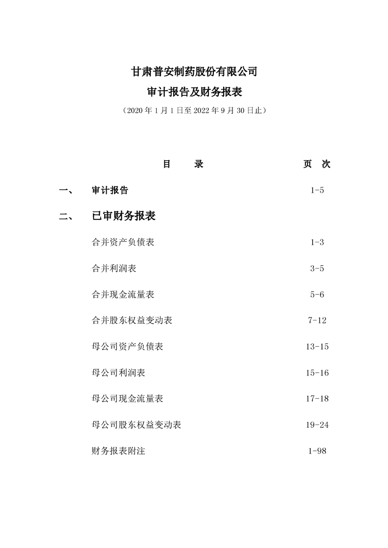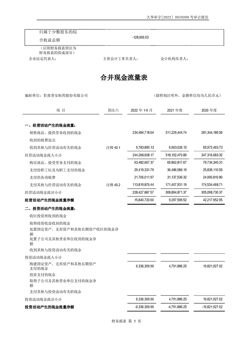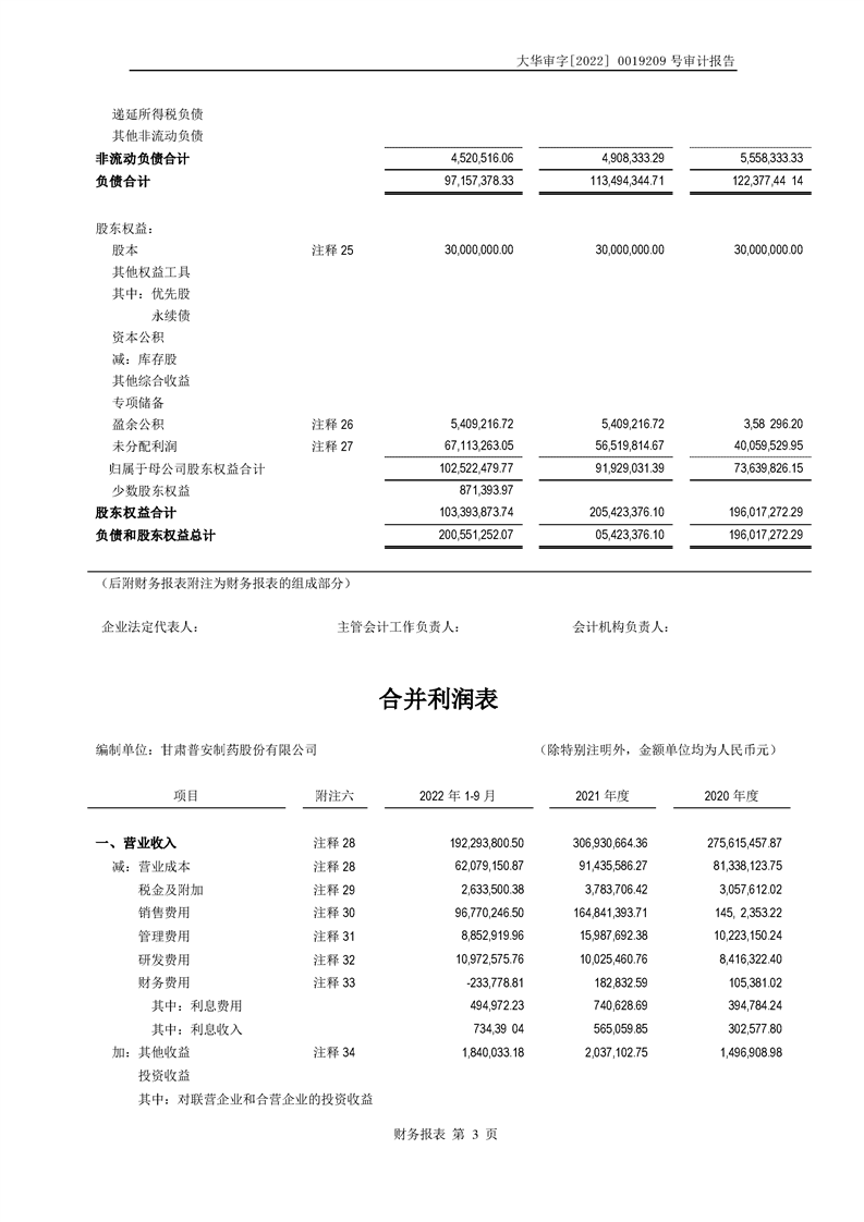 甘肅普安制藥股份有限公司審計報告-大華審字[2022]0019209號