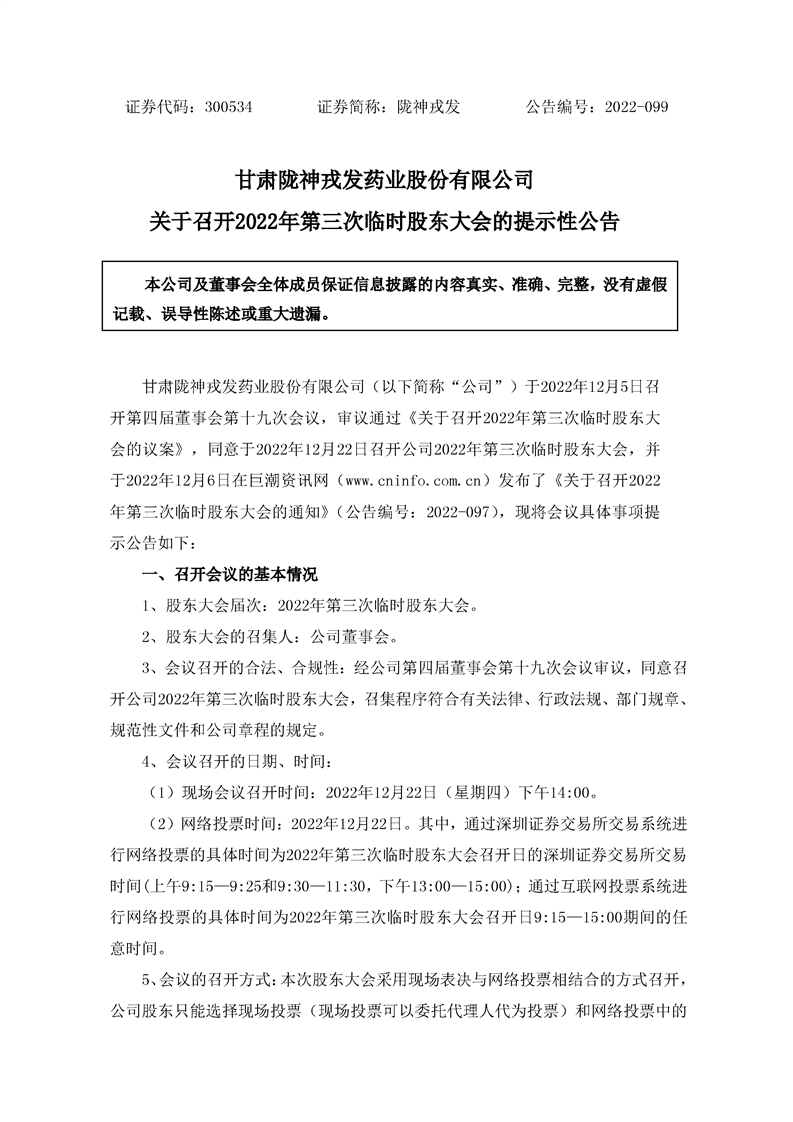 關(guān)于召開(kāi)2022年第三次臨時(shí)股東大會(huì)的提示性公告