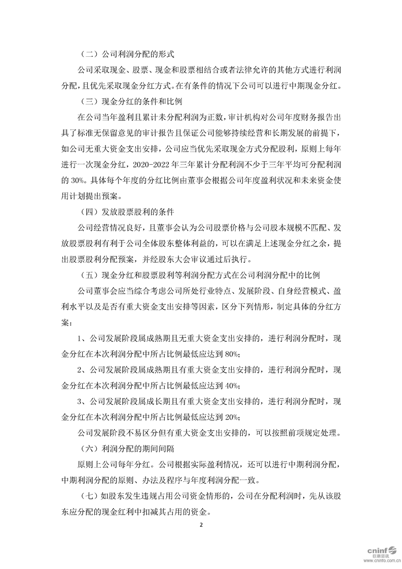 未來(lái)股東回報(bào)規(guī)劃(2020-2022年)