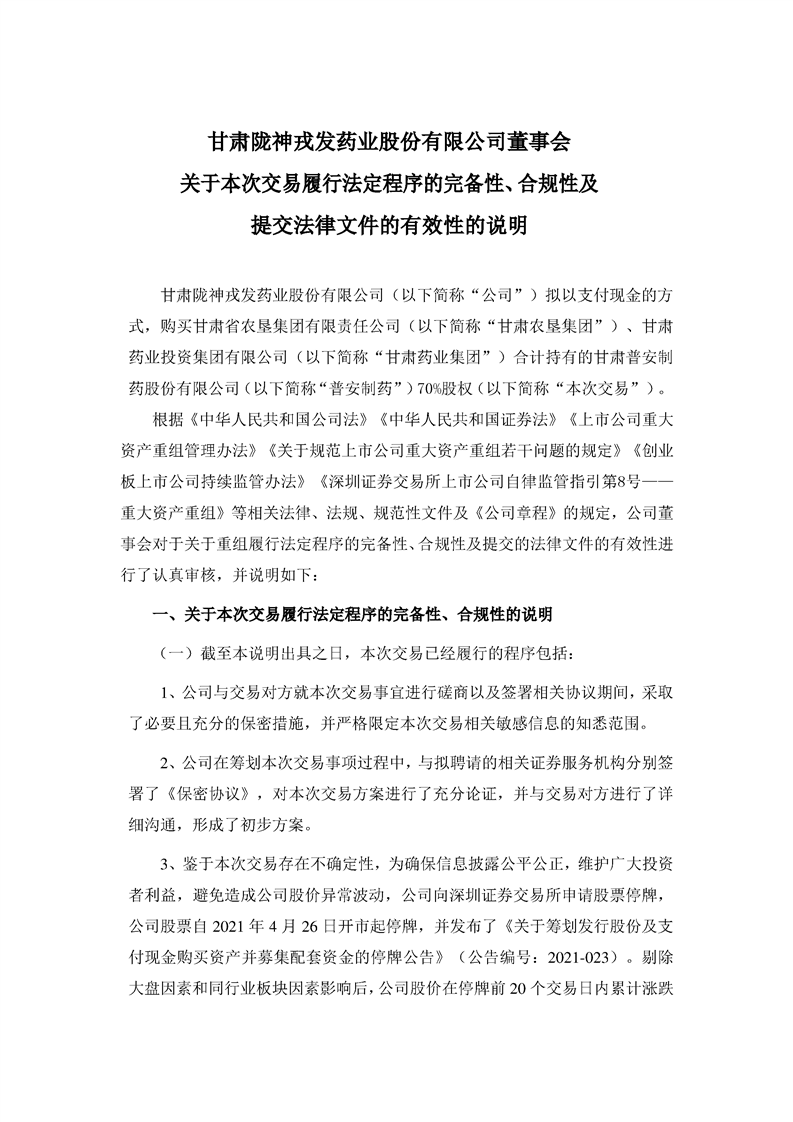 董事會關(guān)于本次交易履行法定程序的完備性、合規(guī)性及提交法律文件的有效性的說明