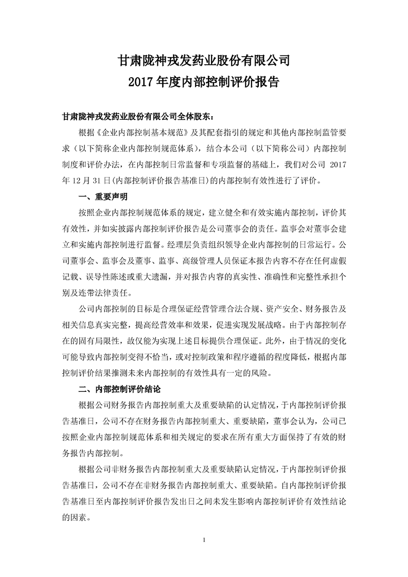 2017 年度內(nèi)部控制評價(jià)報(bào)告