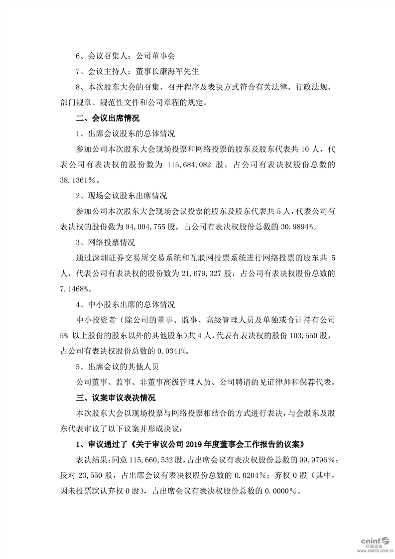 2019年年度股東大會決議公告