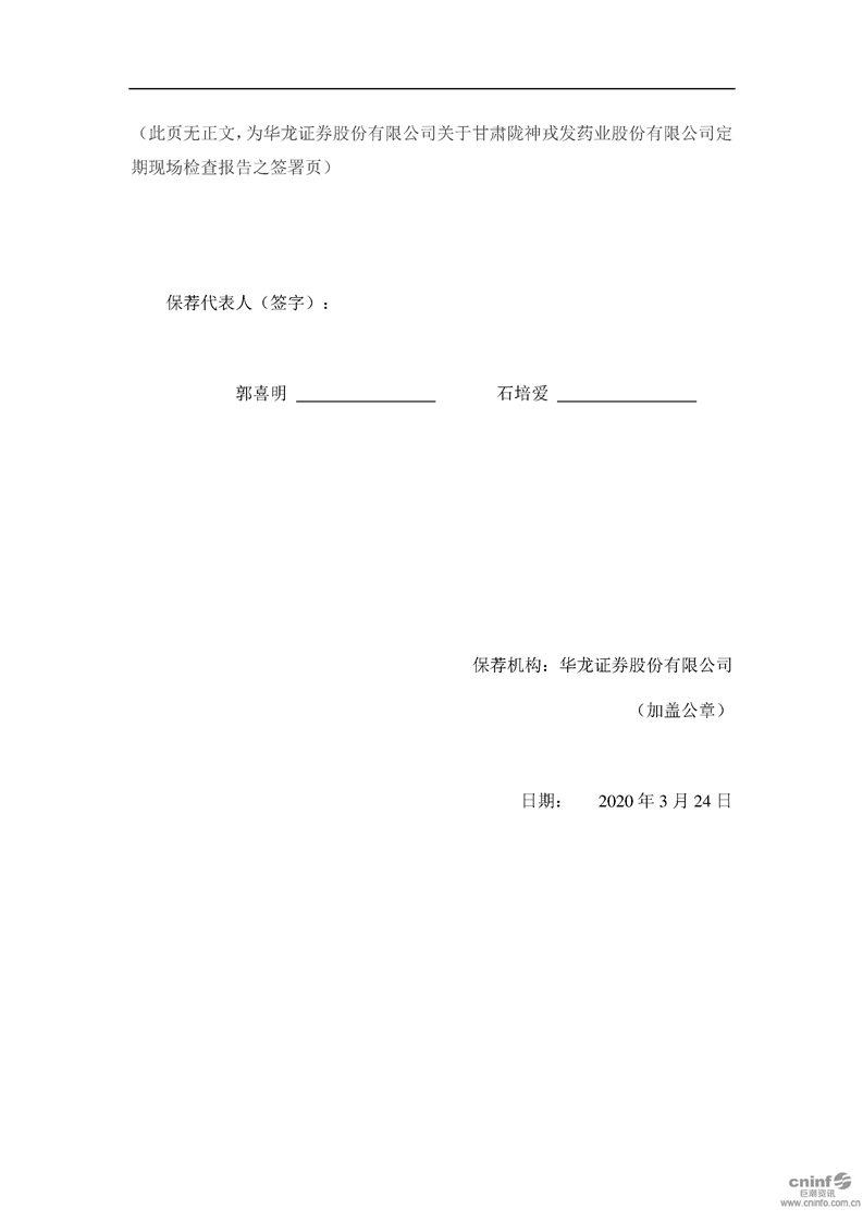 華龍證券股份有限公司關(guān)于公司2019年度持續(xù)督導定期現(xiàn)場檢查報告