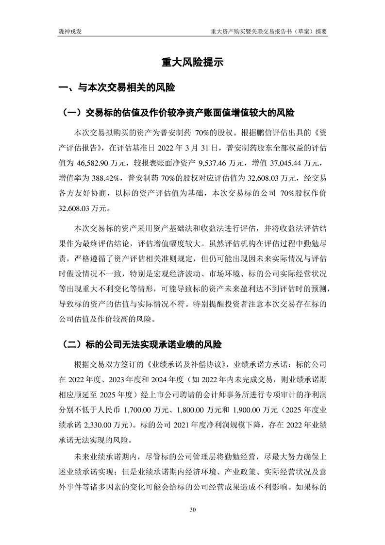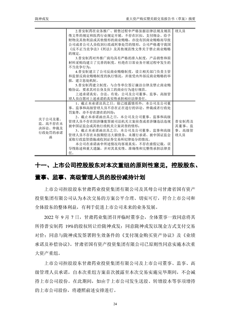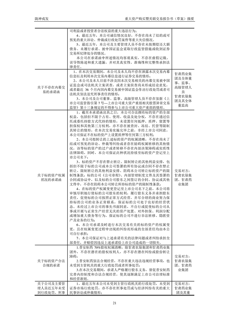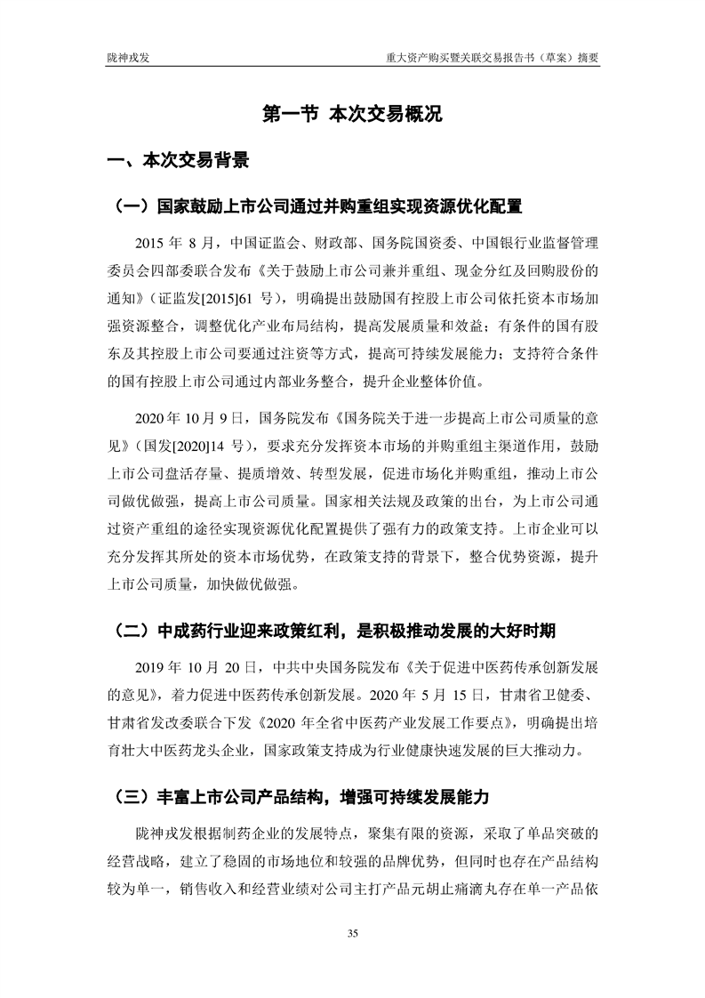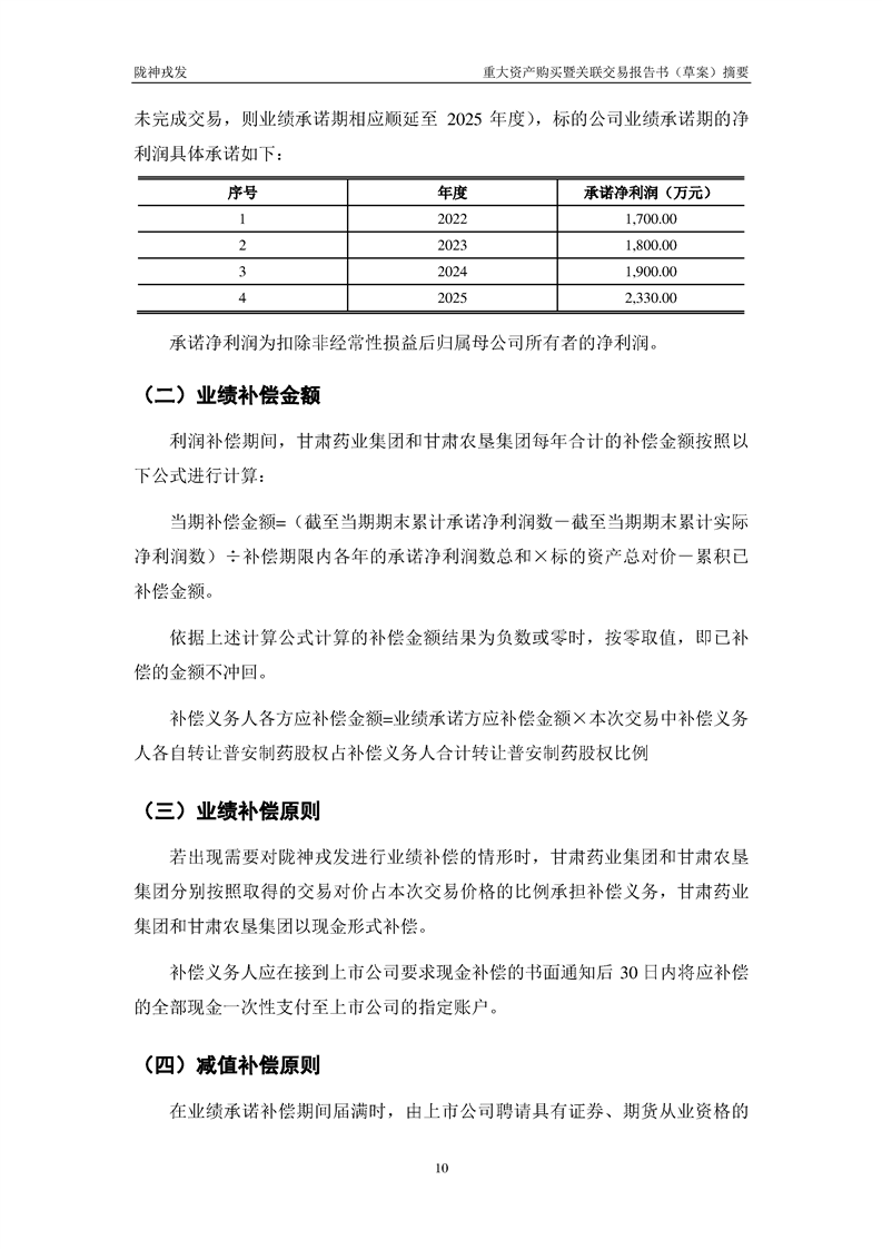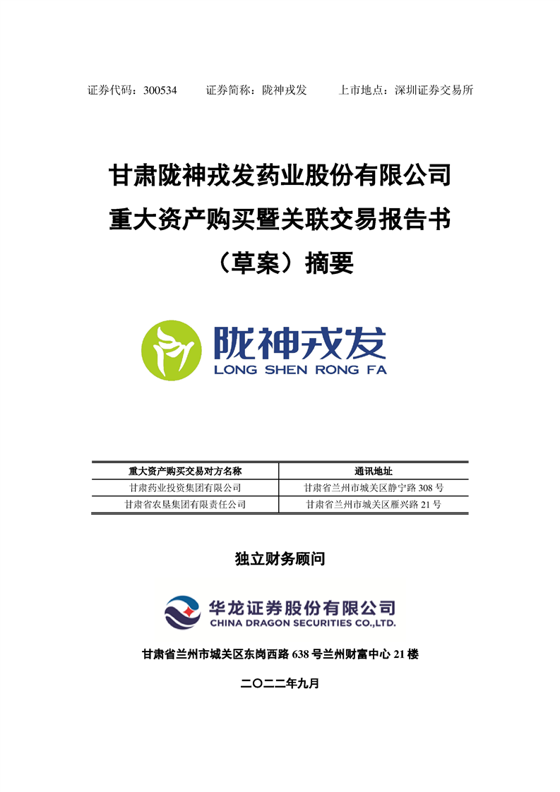 甘肅隴神戎發(fā)藥業(yè)股份有限公司重大資產(chǎn)購(gòu)買暨關(guān)聯(lián)交易報(bào)告書(草案)摘要