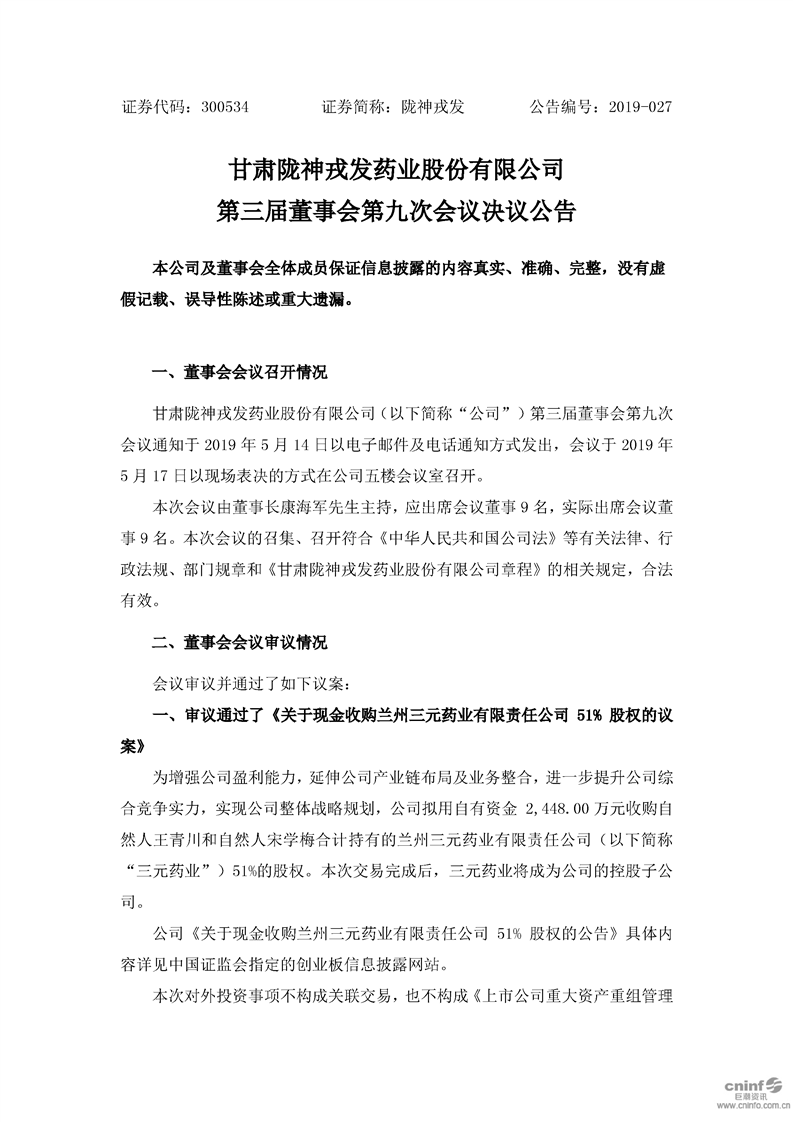 第三屆董事會(huì)第九次會(huì)議決議公告