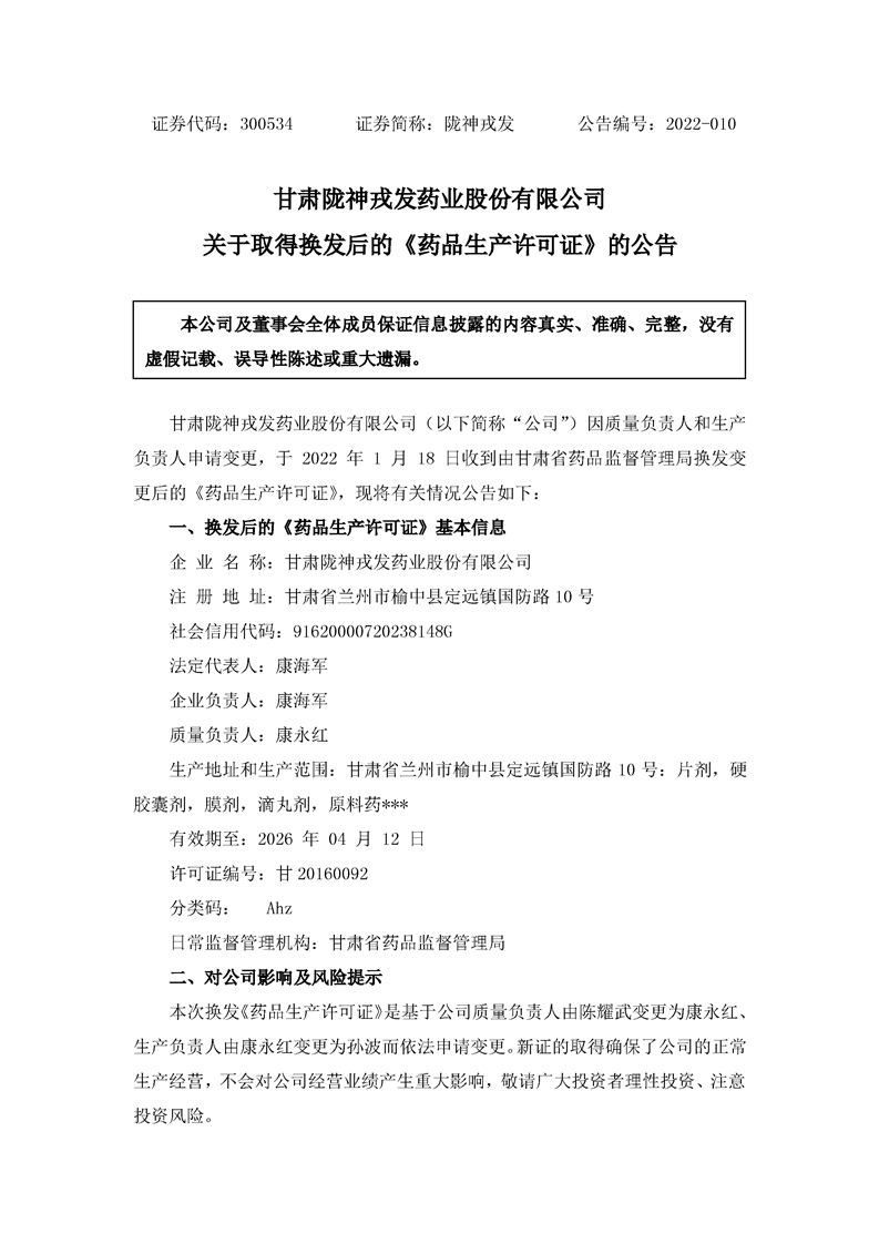 關(guān)于取得換發(fā)后的《藥品生產(chǎn)許可證》的公告