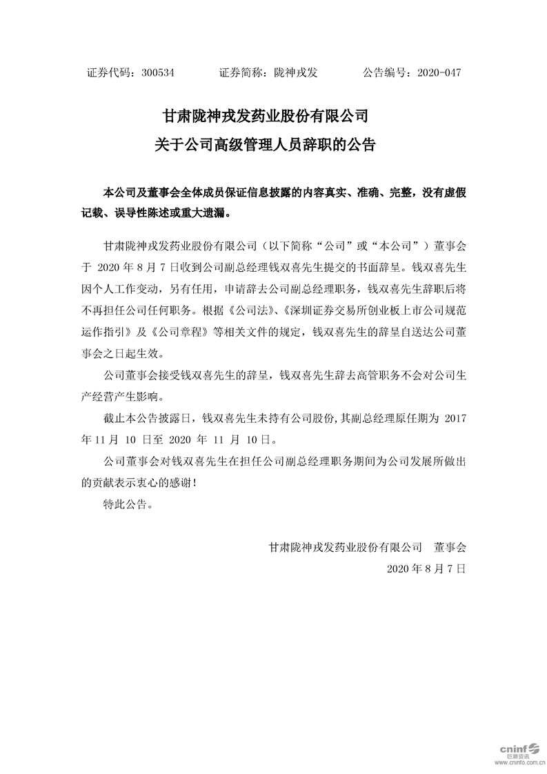 關(guān)于公司高級(jí)管理人員辭職的公告