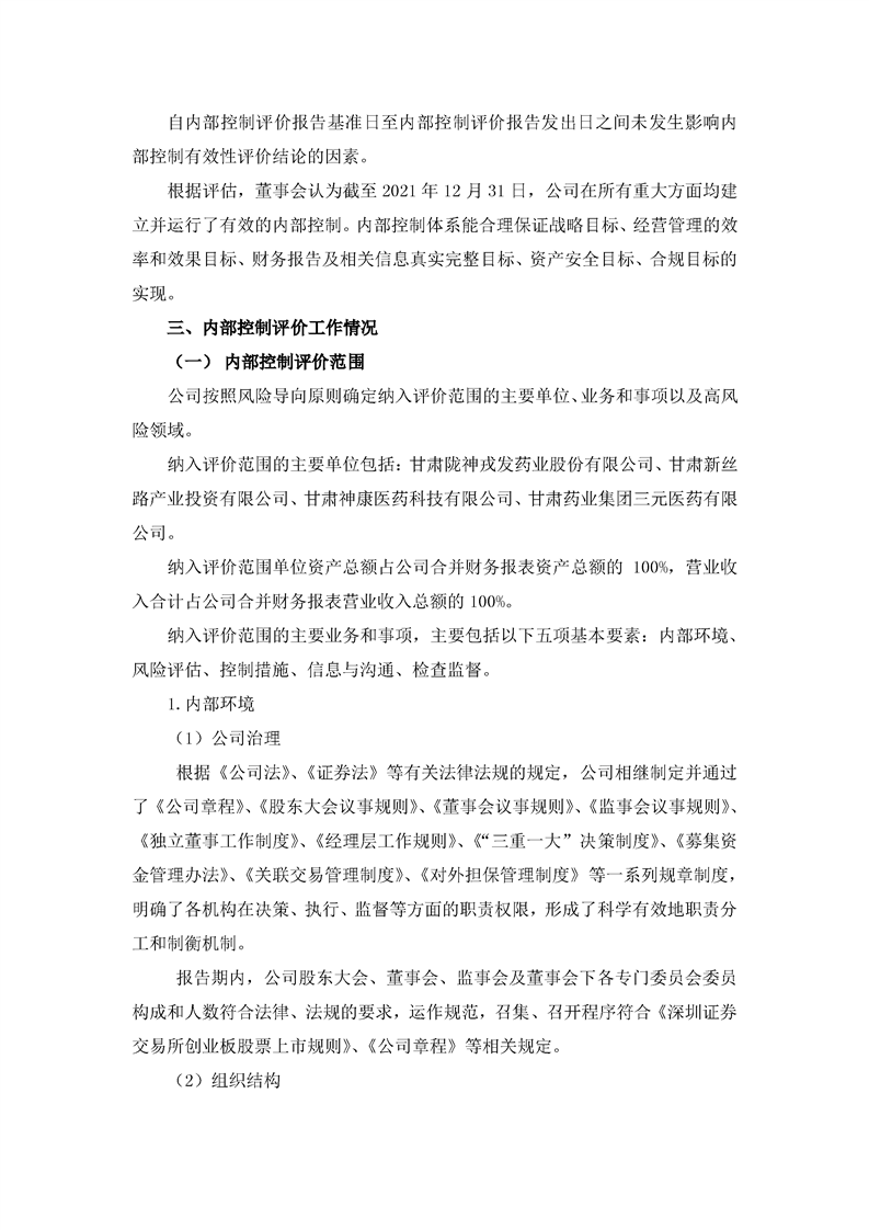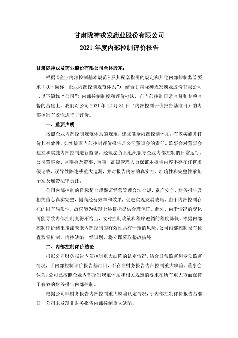 2021年度內(nèi)部控制評價報告