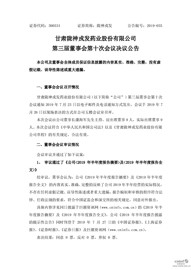 第三屆董事會(huì)第十次會(huì)議決議公告