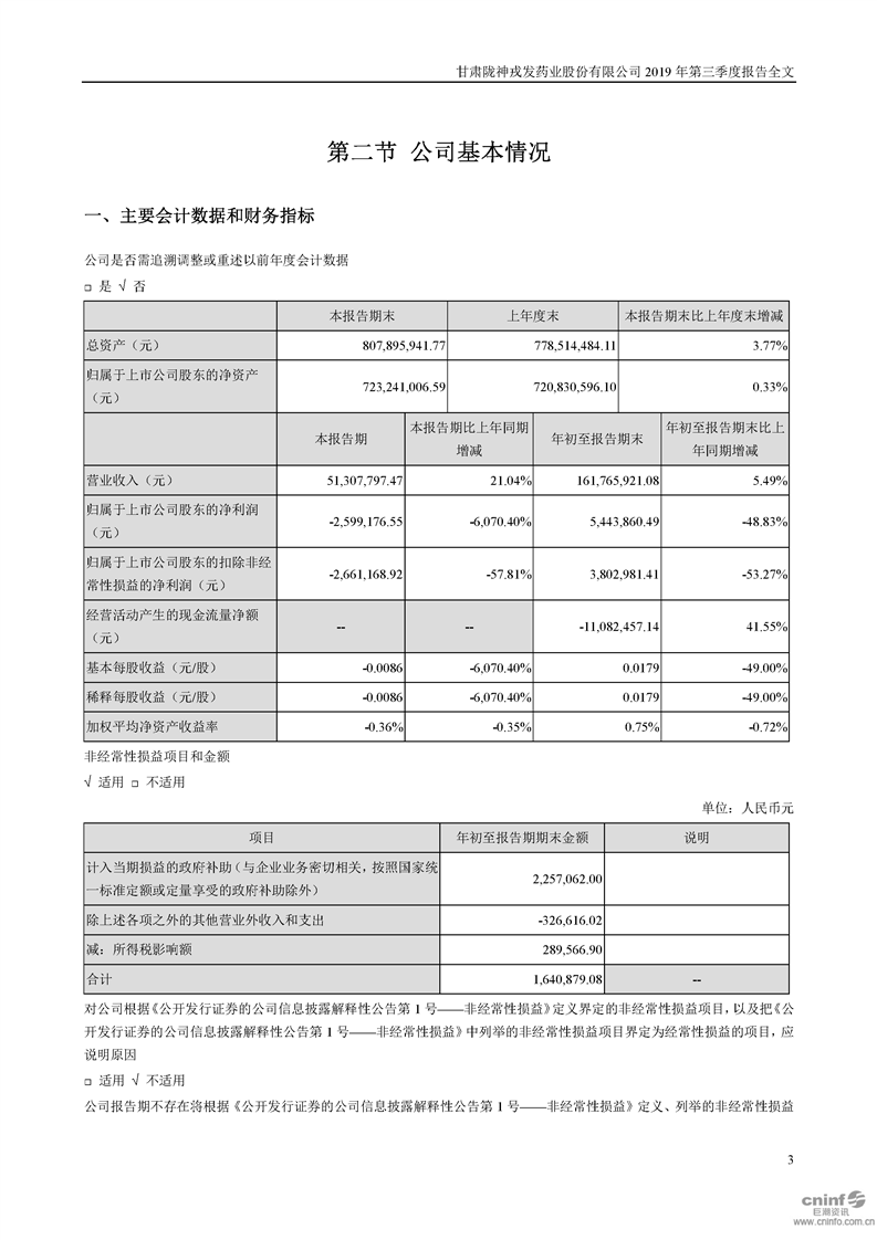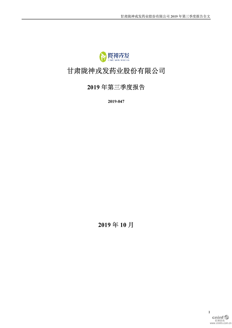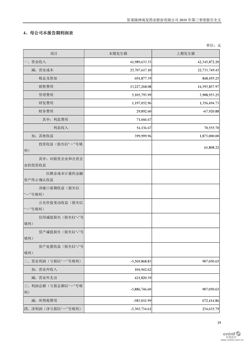 2019年第三季度報告全文