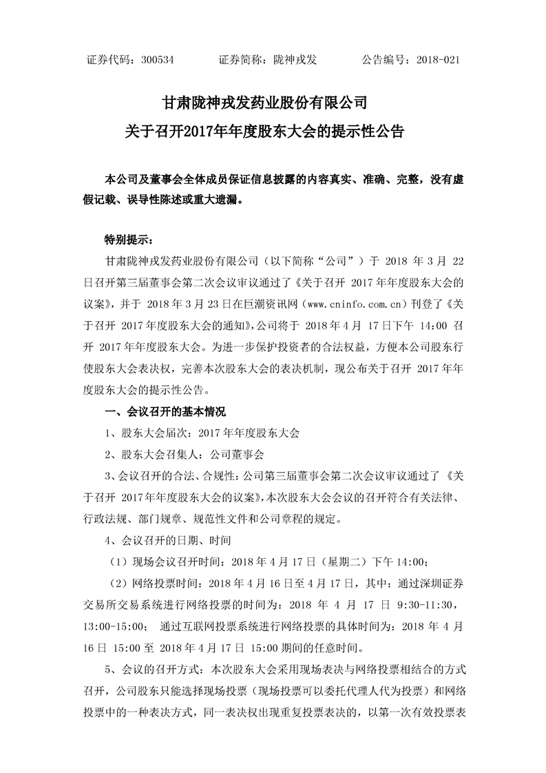 關(guān)于召開2017年年度股東大會的提示性公告