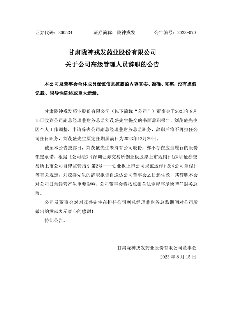 關(guān)于公司高級管理人員辭職的公告