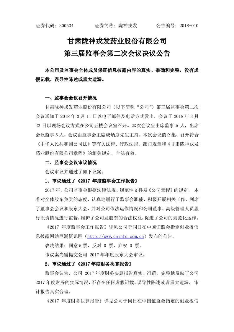 第三屆監(jiān)事會(huì)第二次會(huì)議決議公告