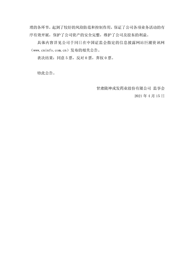 監(jiān)事會決議公告