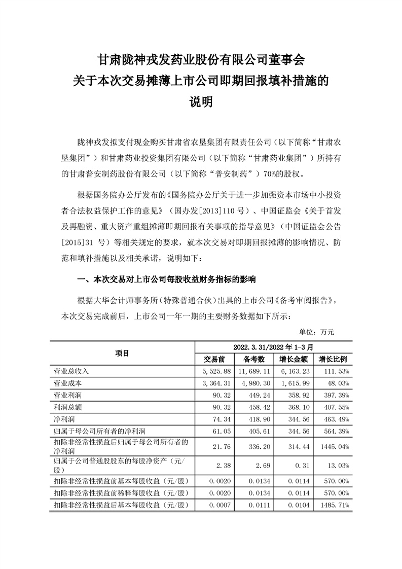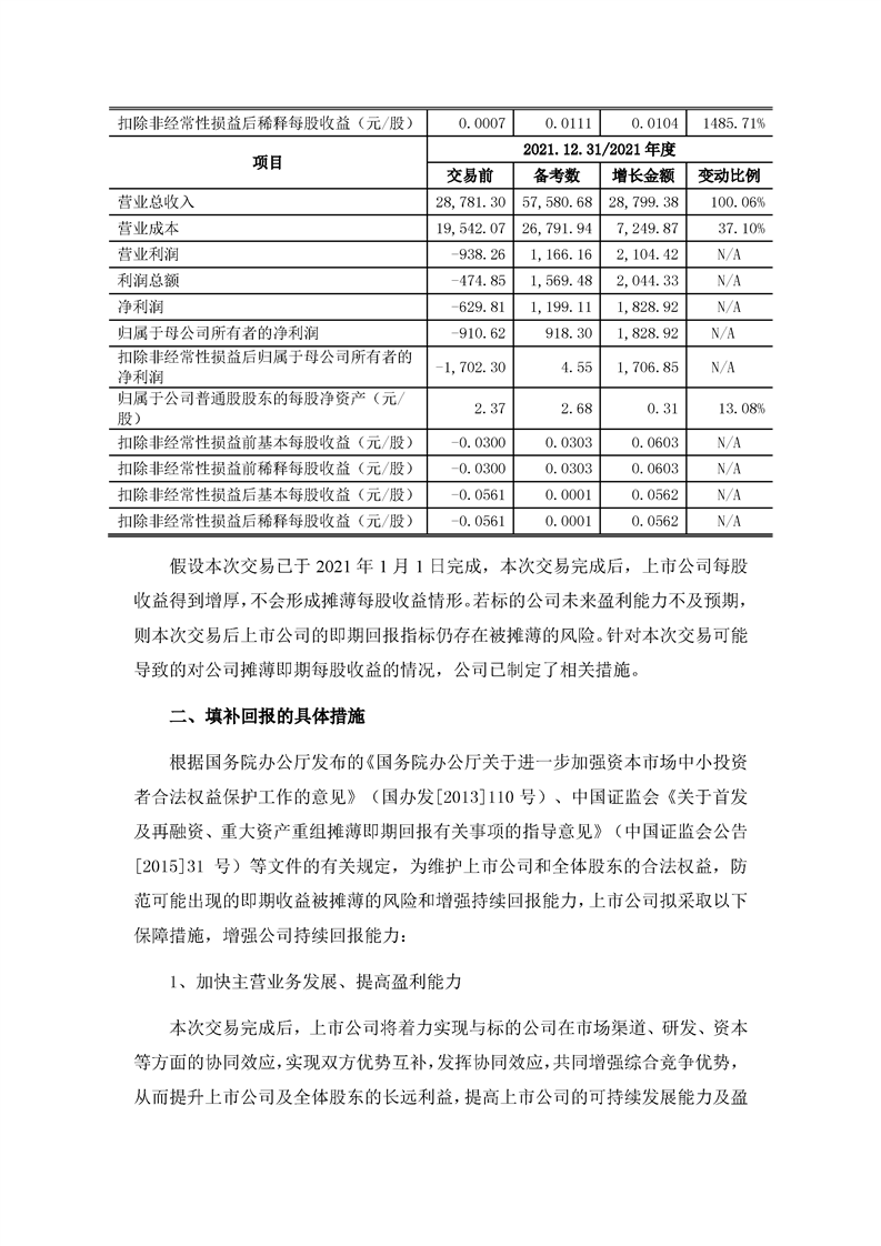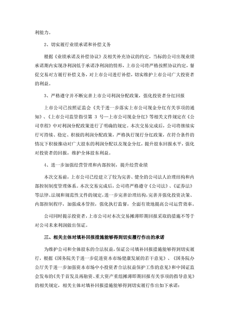 董事會(huì)關(guān)于本次交易攤薄上市公司即期回報(bào)填補(bǔ)措施的說明