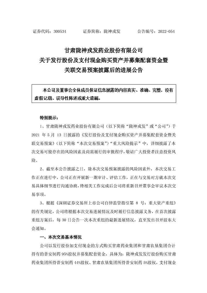 關于發(fā)行股份及支付現金購買資產并募集配套資金暨關聯交易預案披露后的進展公告