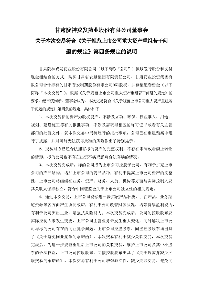 董事會(huì)關(guān)于本次交易符合《關(guān)于規(guī)范上市公司重大資產(chǎn)重組組若干問題的規(guī)定》第四條規(guī)定的說明