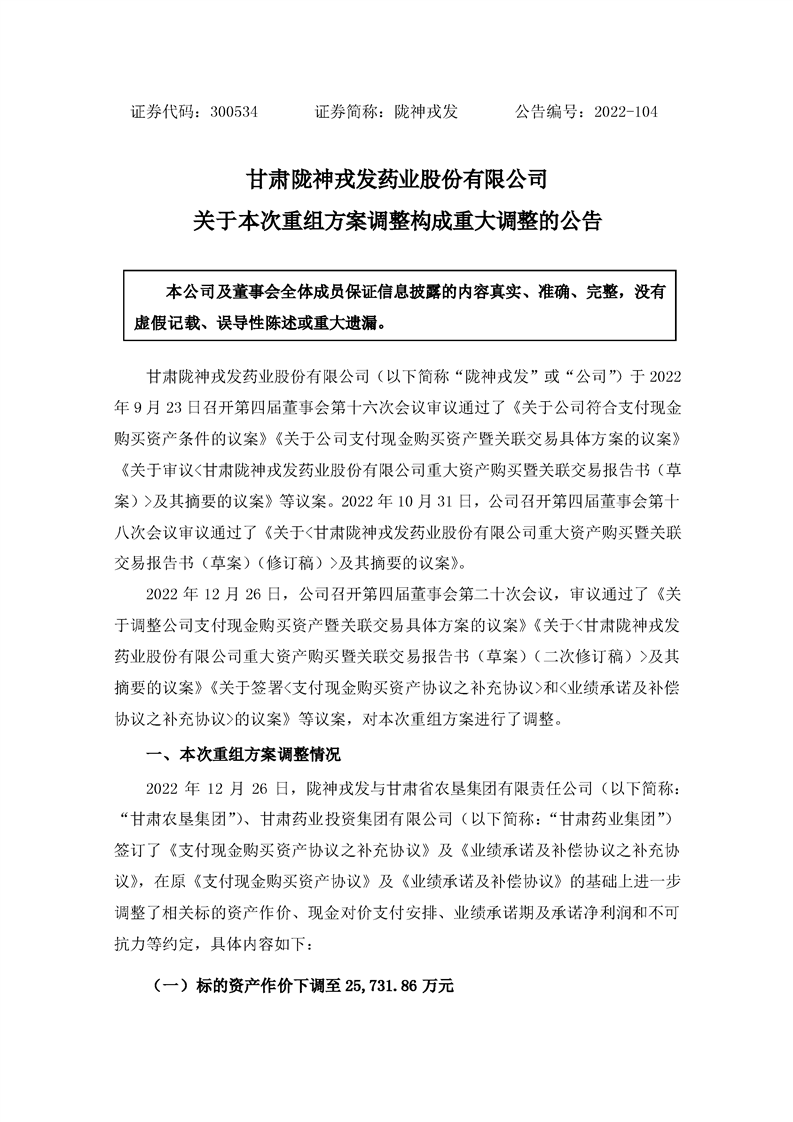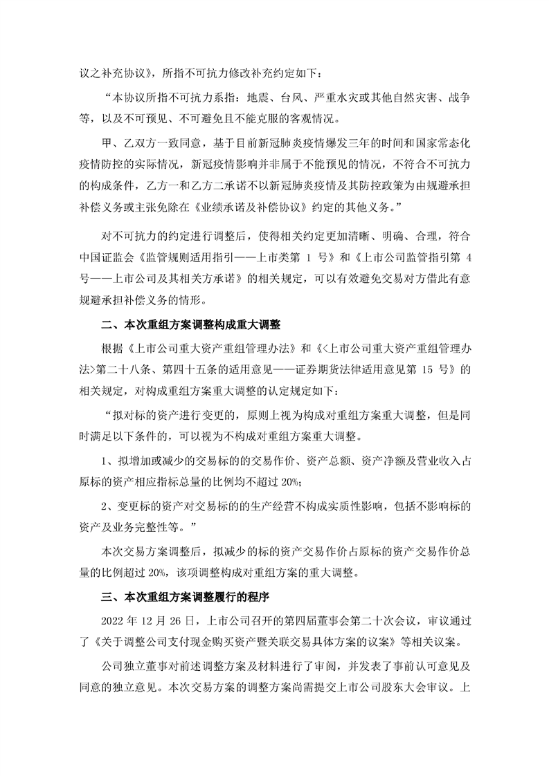 關于本次重組方案調整構成重大調整的公告