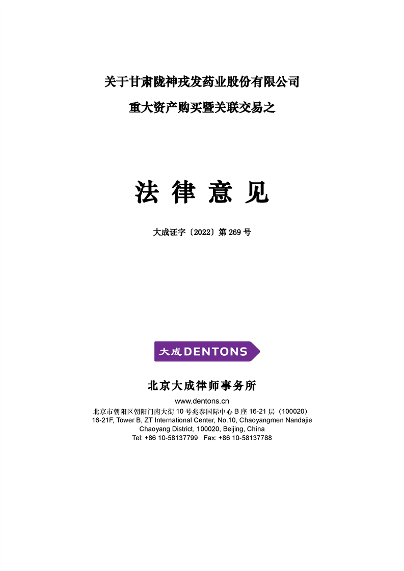 北京大成律師事務(wù)所關(guān)于隴神戎發(fā)重大資產(chǎn)購買暨關(guān)聯(lián)交易法律意見