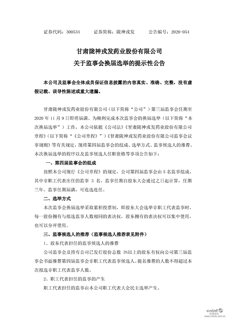 關(guān)于監(jiān)事會換屆選舉的提示性公告