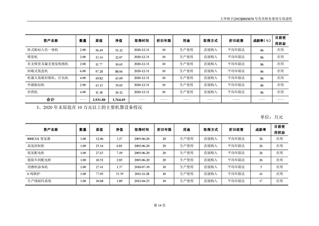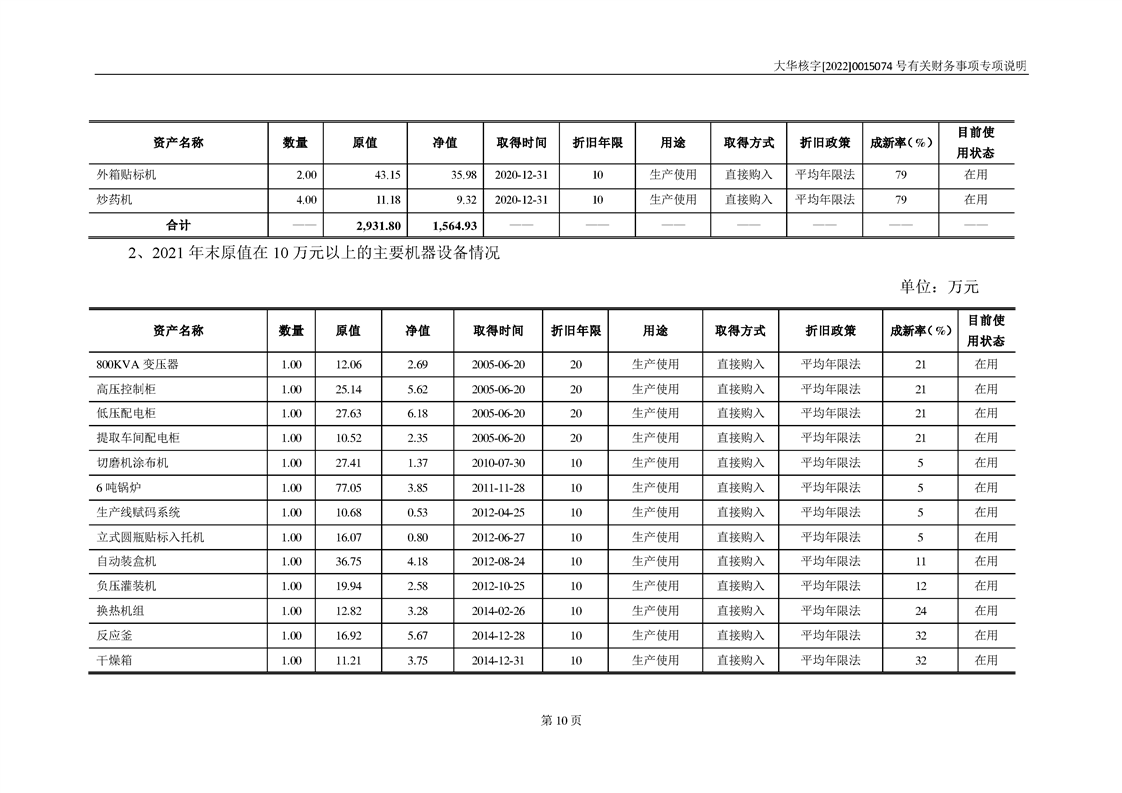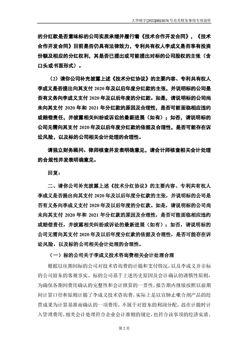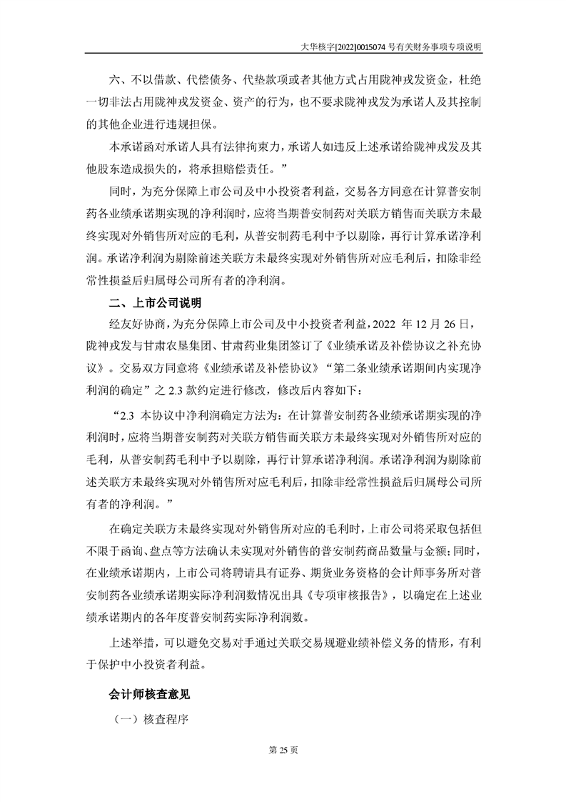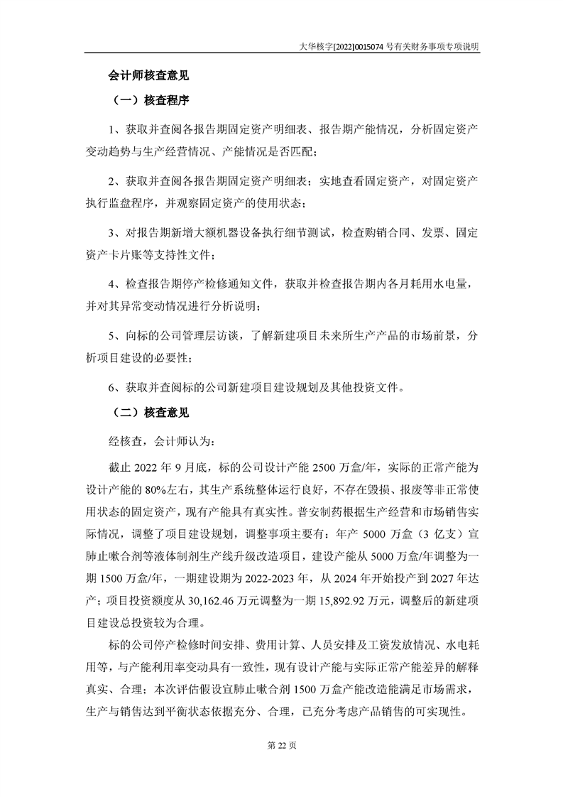 關(guān)于深圳證券交易所對(duì)甘肅隴神戎發(fā)藥業(yè)股份有限公司的重組問(wèn)詢函中有關(guān)財(cái)務(wù)事項(xiàng)的專項(xiàng)說(shuō)明-大華核字[2022]0015074號(hào)