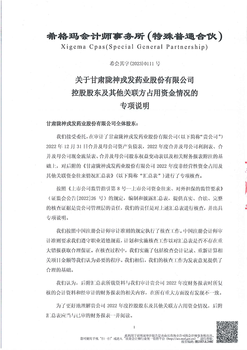 控股股東及其它關(guān)聯(lián)方資金占用情況的專項(xiàng)說明