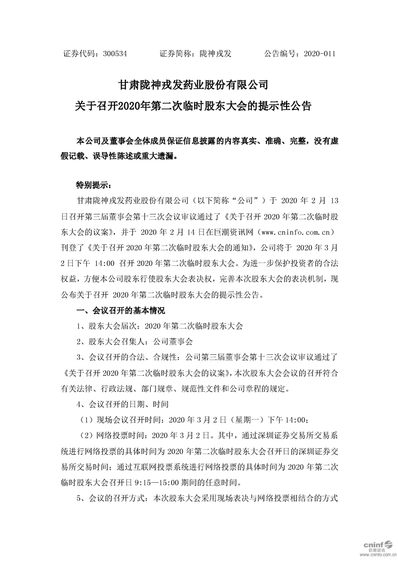 關(guān)于召開2020年第二次臨時(shí)股東大會(huì)的提示性公告