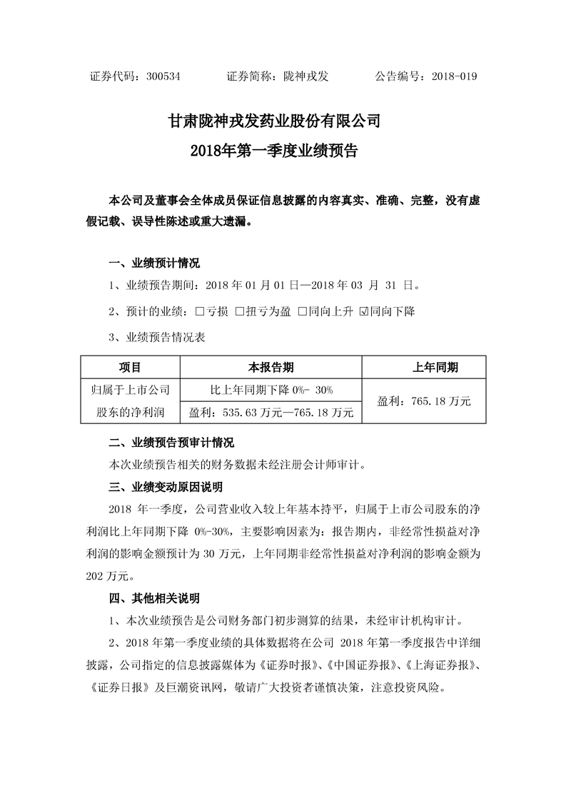 2018年第一季度業(yè)績(jī)預(yù)告