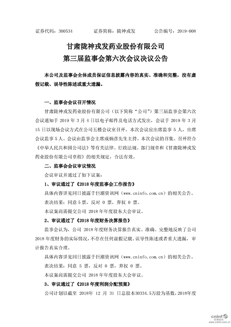 第三屆監(jiān)事會(huì)第六次會(huì)議決議公告