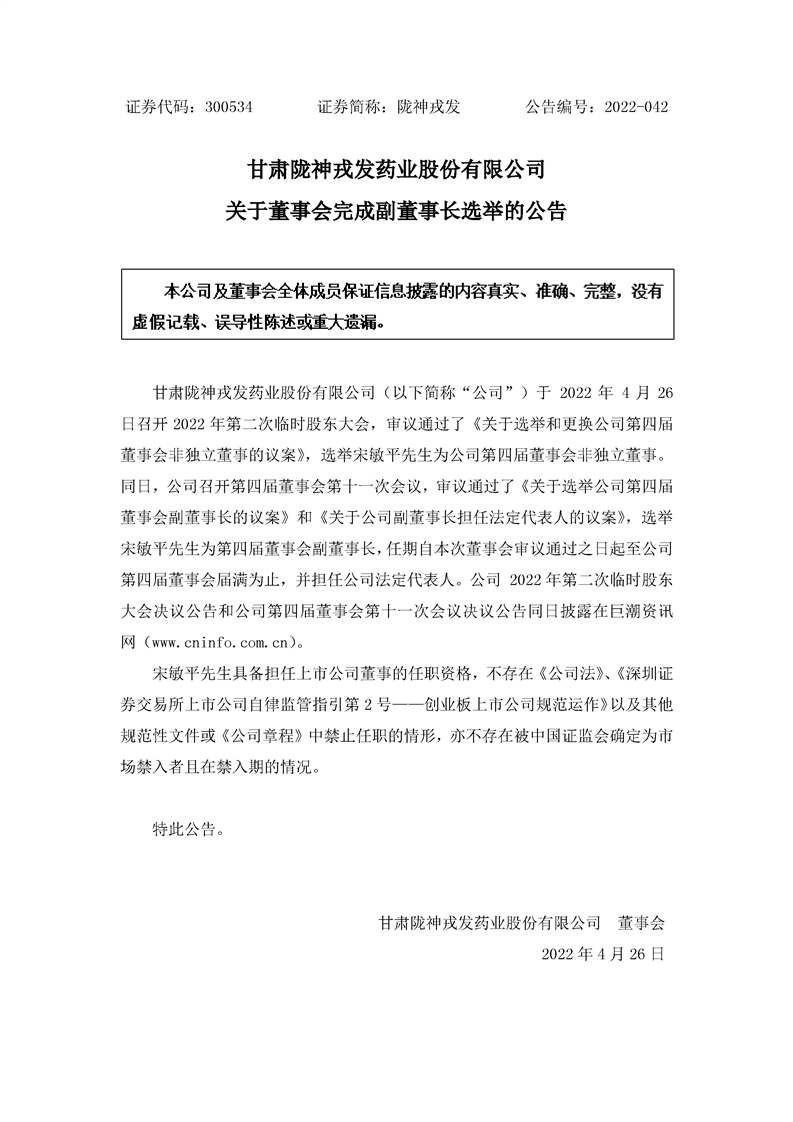 關(guān)于董事會(huì)完成副董事長(zhǎng)選舉的公告