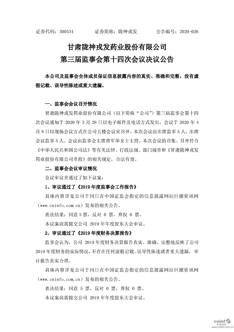 第三屆監(jiān)事會第十四次會議決議公告
